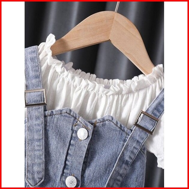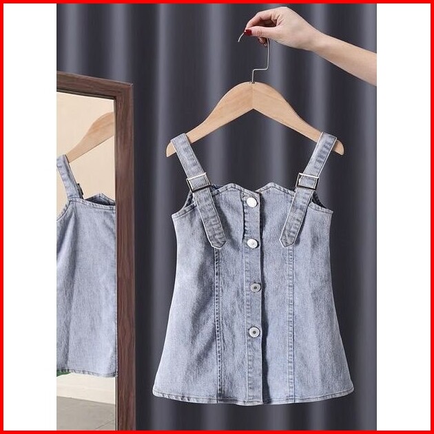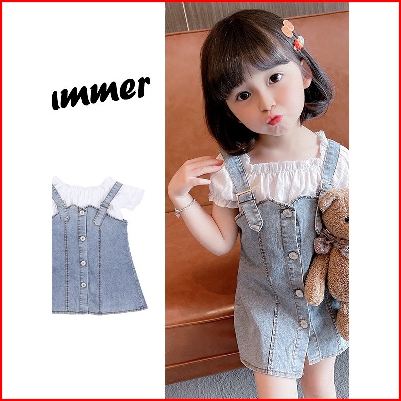 Quenza Setelan Dress Anak Perempuan Jeans Kombinasi Rayon Crinkle Modis Korean Style Usia 1-6 Tahun