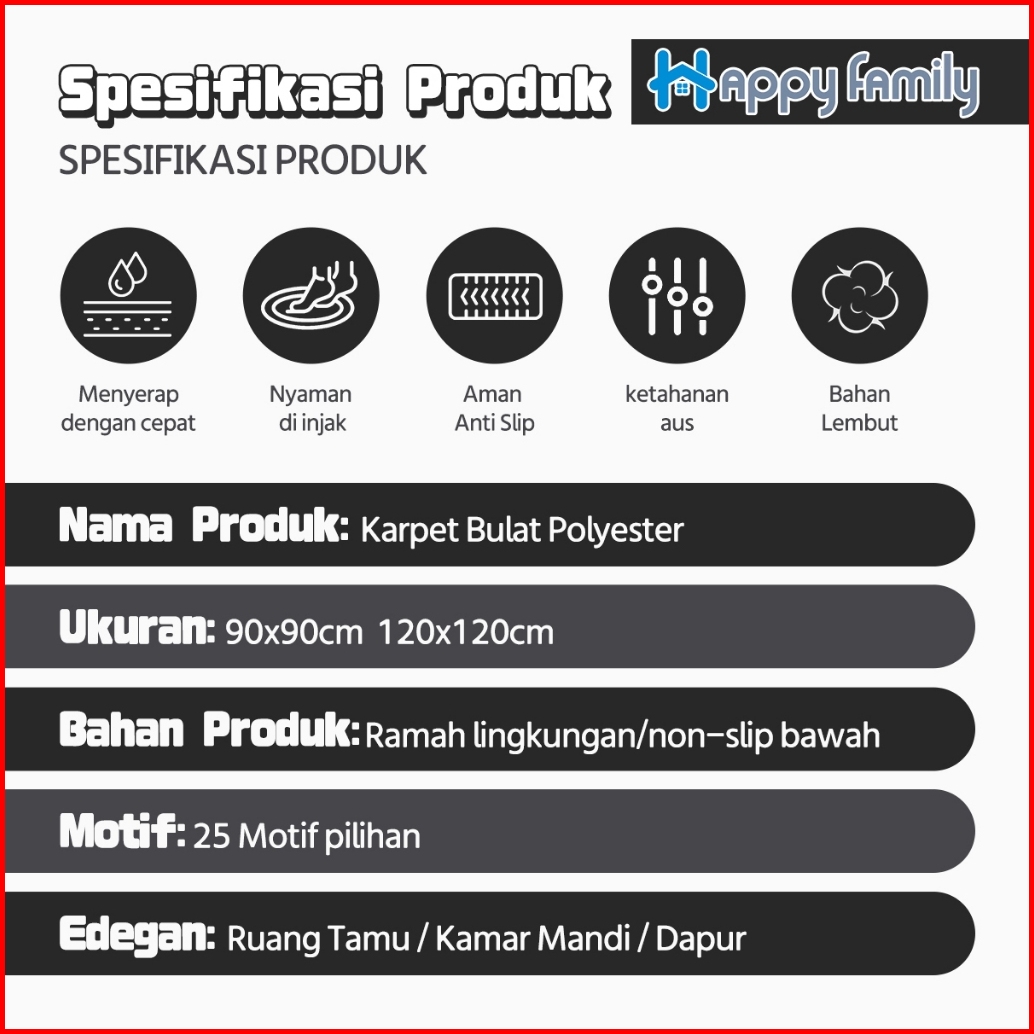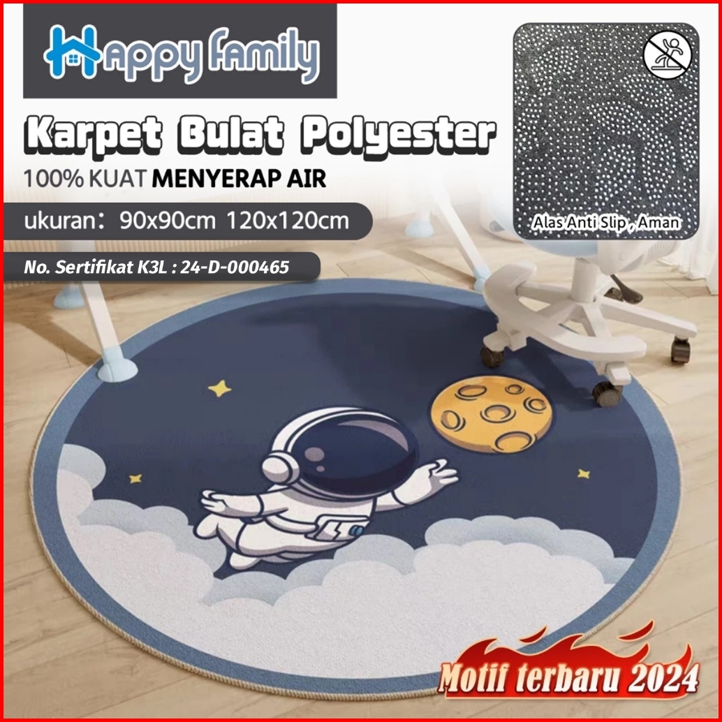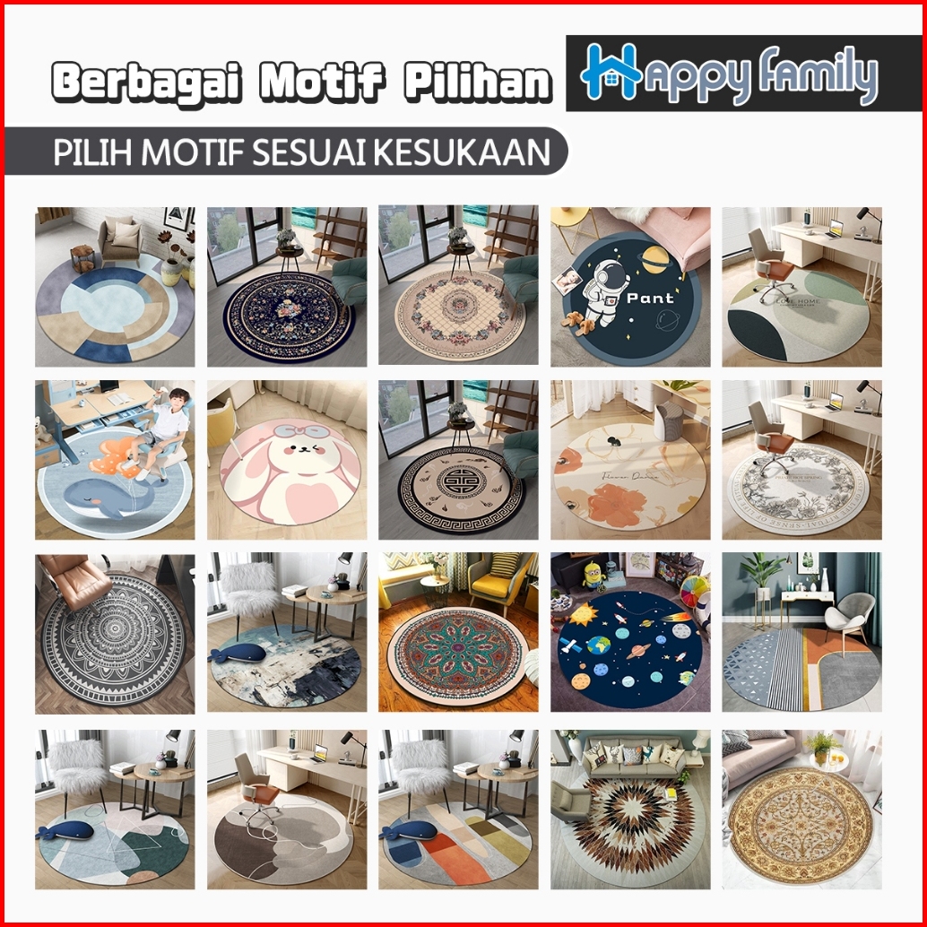 Hf Lokal Karpet Lantai Motif Lucu Polyester Bulat 90x90cm 120x120cm Premium Anti Slip