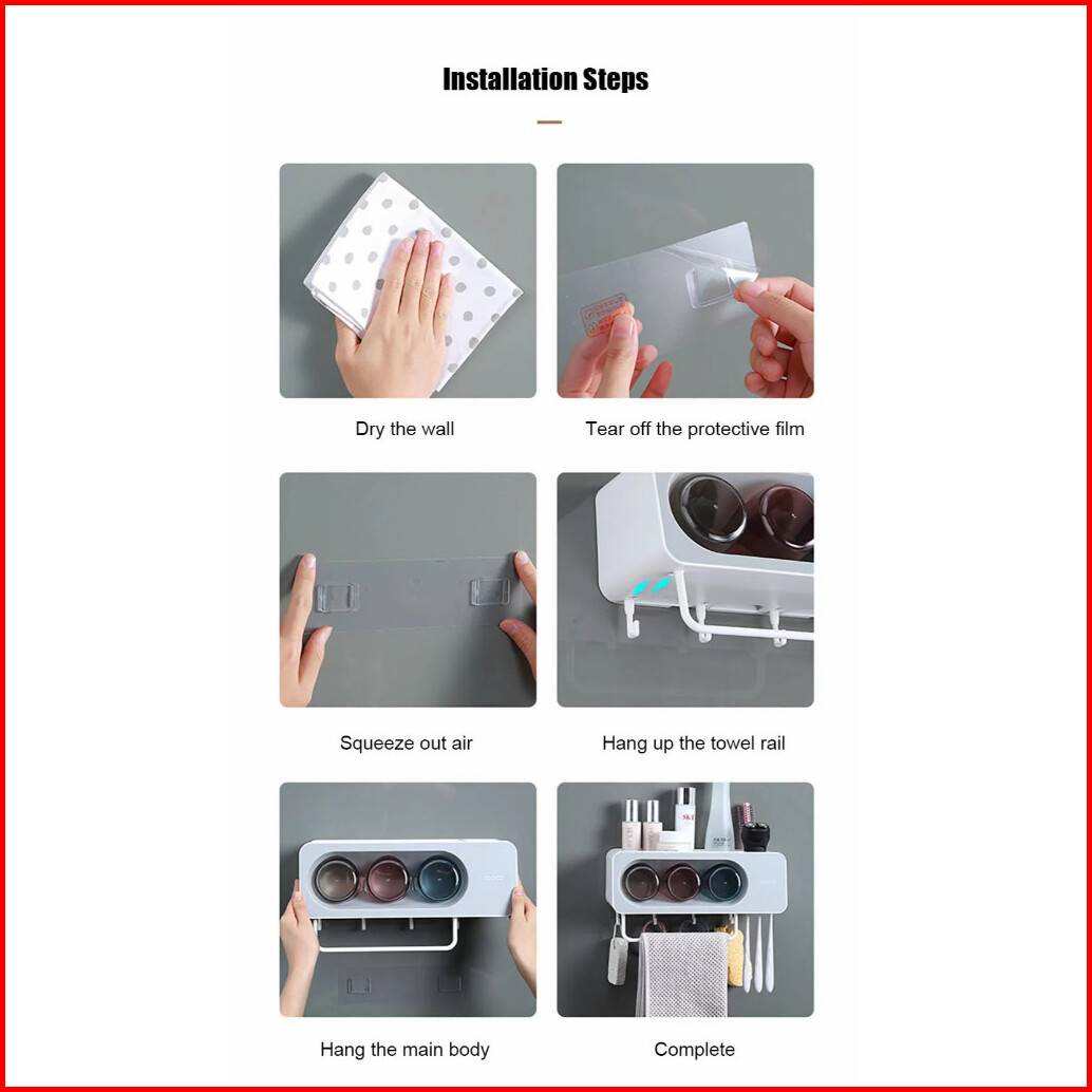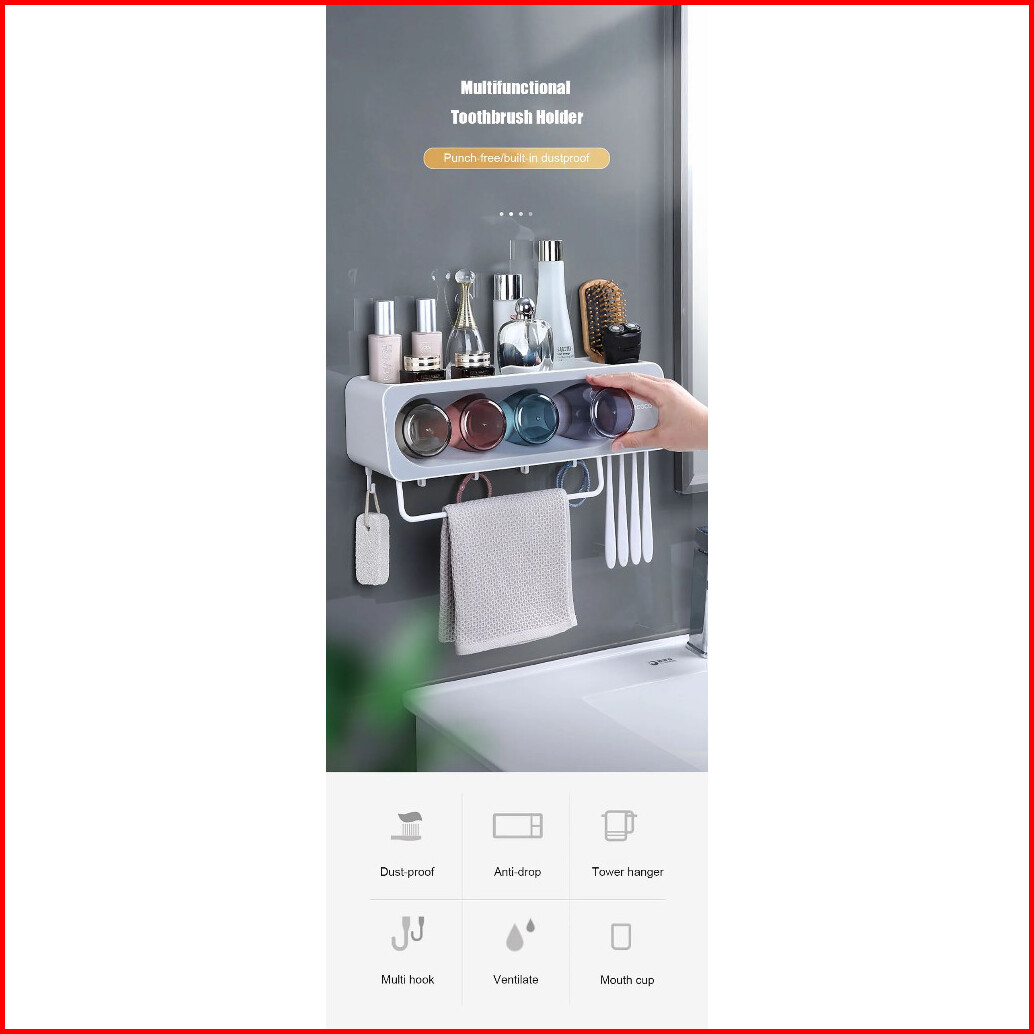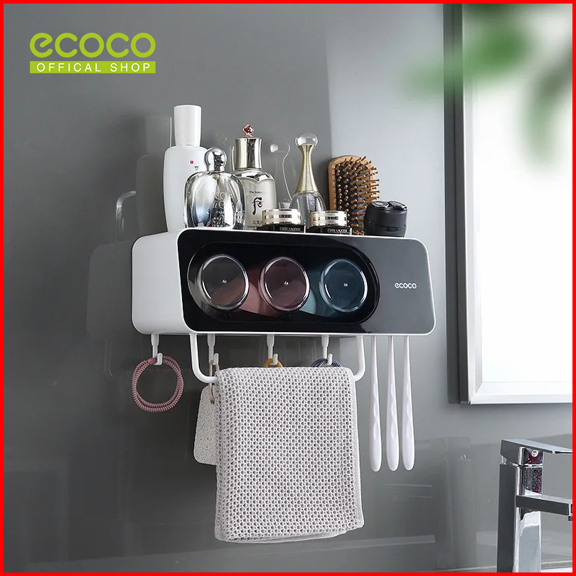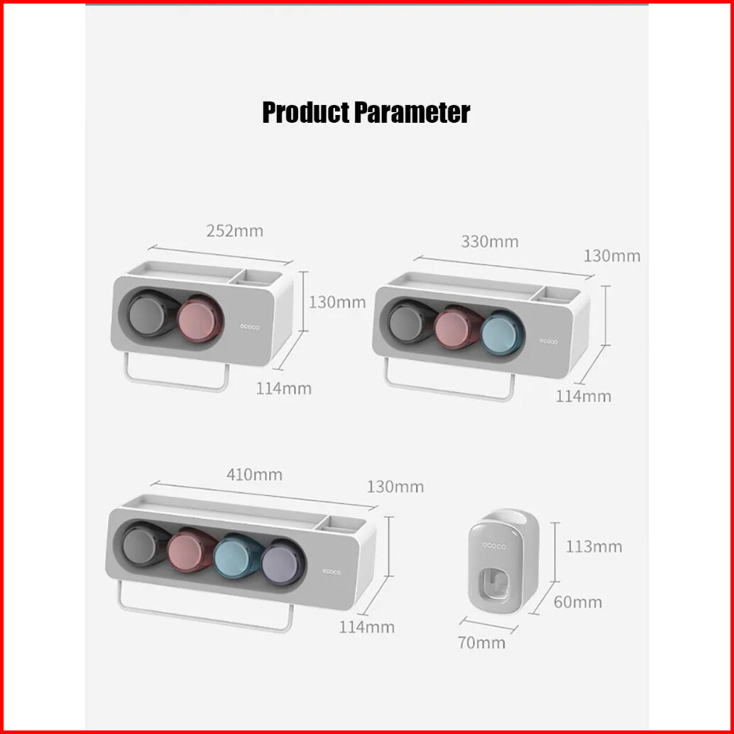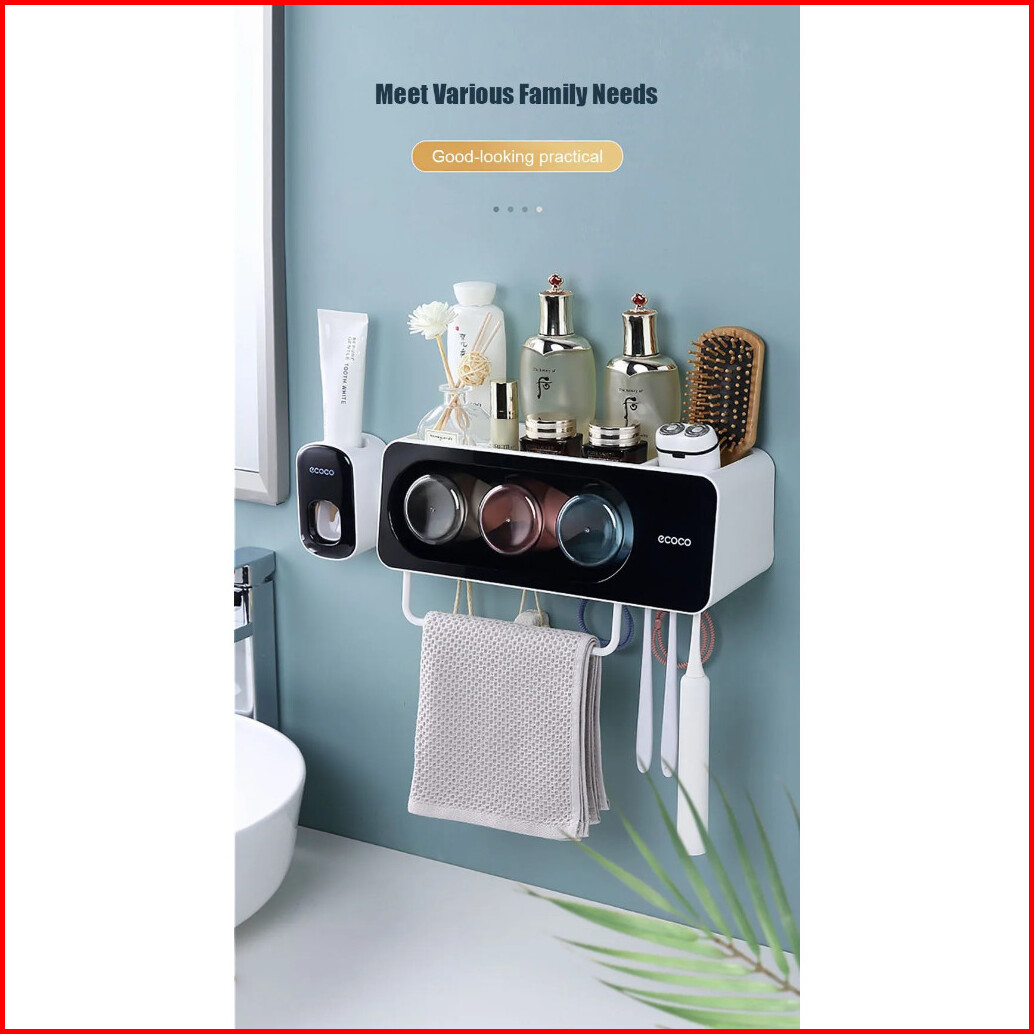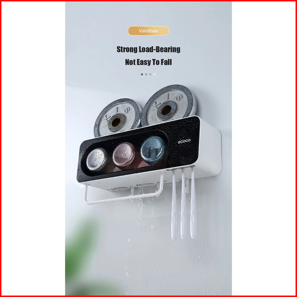 Ecoco Toothbrush Rack Transparent Three Cup - Rak Sikat Gigi Rak Kamar Mandi Dengan Gelas