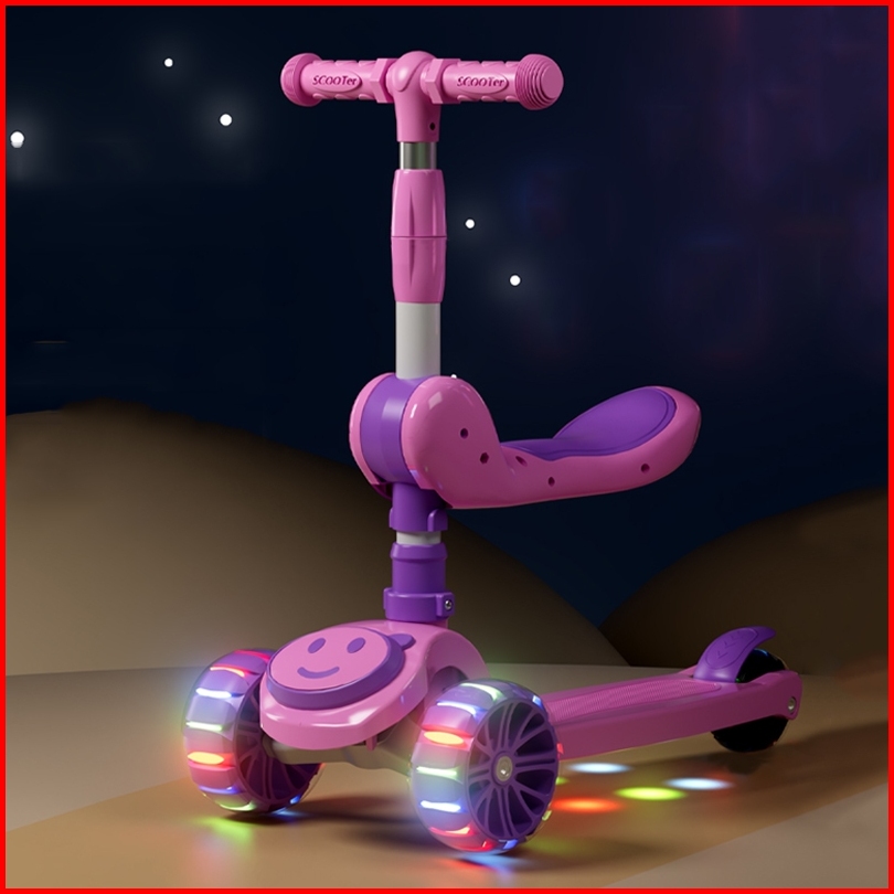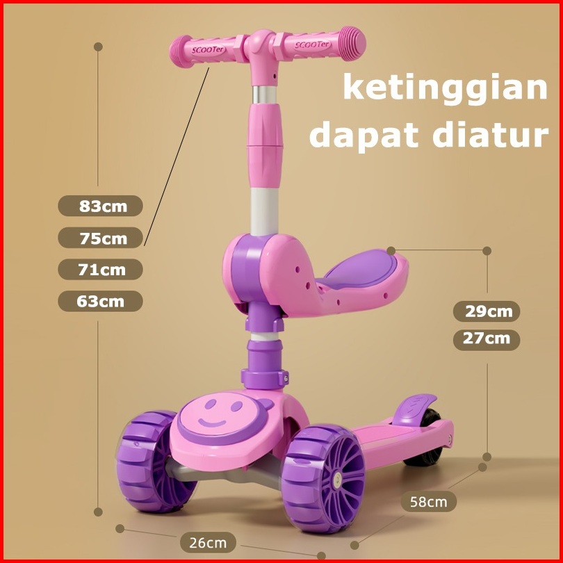 Skuter Anak 3 Roda Otoped Lipat Dilengkapi Kursi Musik Dan Lampu Mainan Anak Perempuan Dan Laki-laki