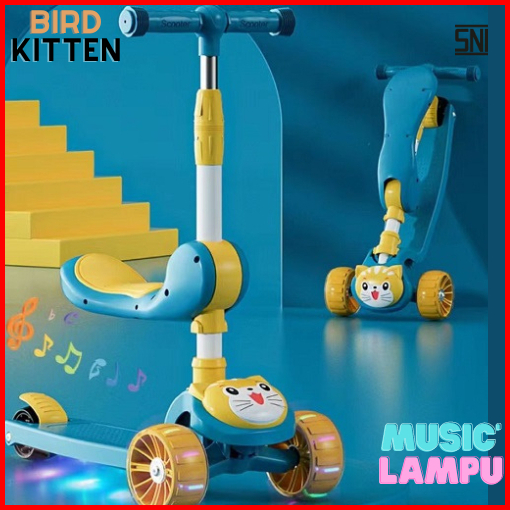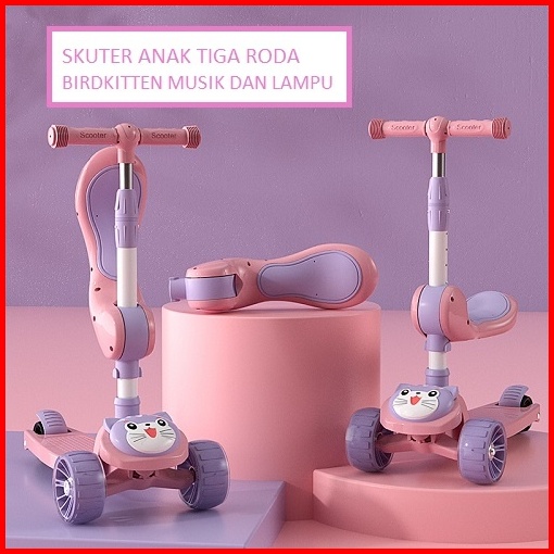 Scooter Birdkitty Skuter Otoped Roda 3 Anak Perempuan Lelaki Cowok Cewek Dengan Bangku Kursi Musik Karakter Lucu Otopet
