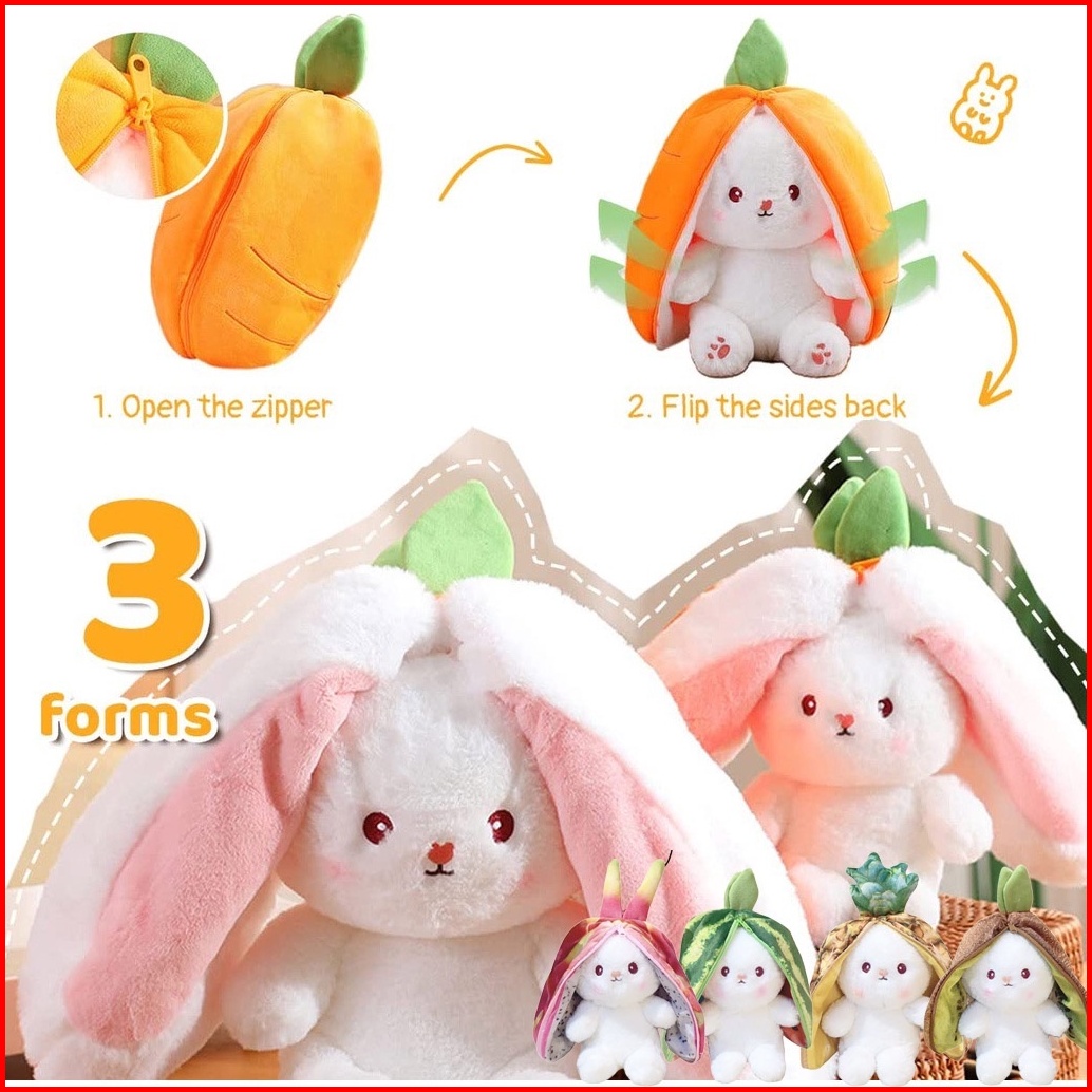 Mainan Boneka Lucu Kelinci Rabbit Strawberry Wortel Mainan Viral Flip Lucu Mewah Telinga Panjang Buah Bunny Rabbit 30cm