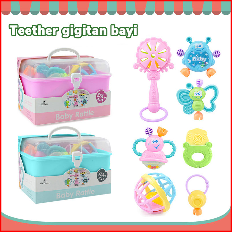 Teether Bayi Gigitan Bayi 7pcs Bpa Free Mainan Kerincingan Bayi 0-12 Bulan Pendidikan Awal Teether Bayi Set Rattle Bayi