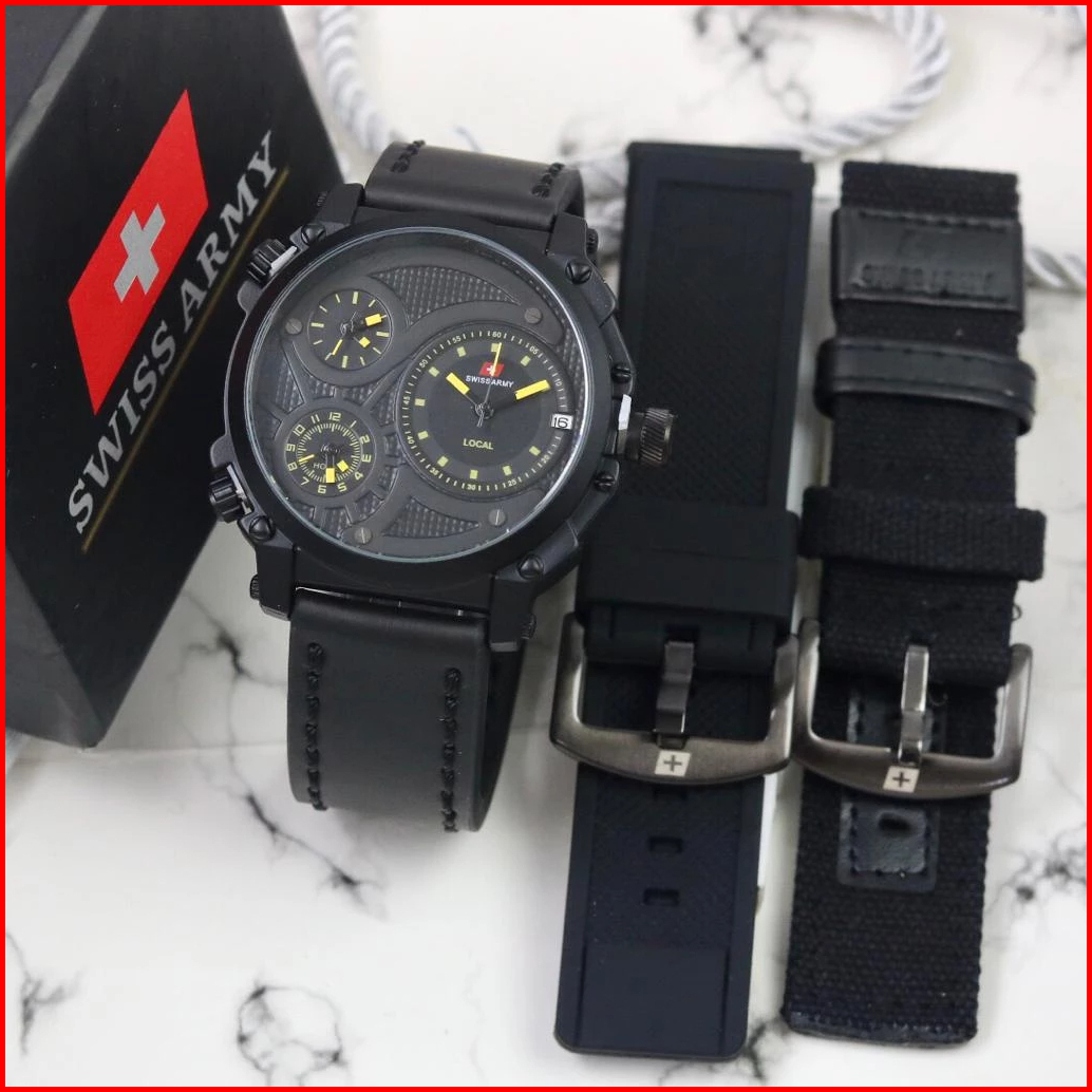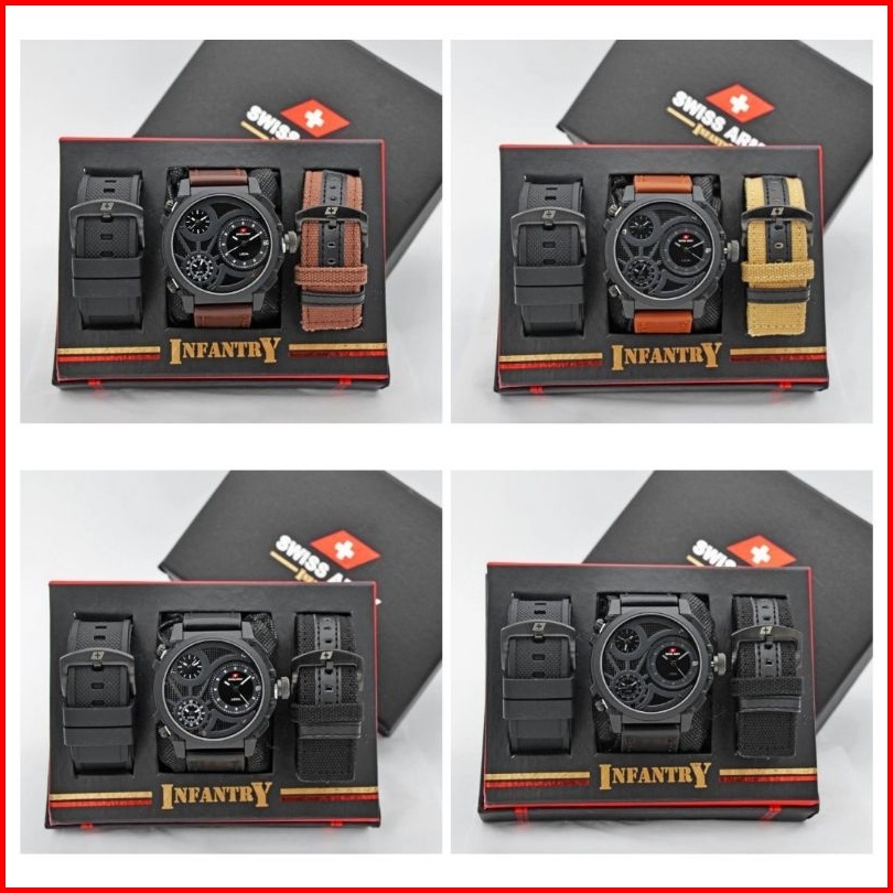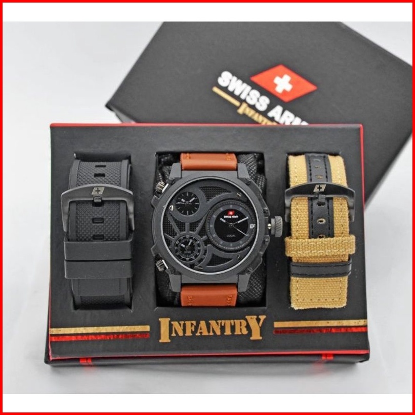 Jam Tangan Pria Swiss Infinity 3time Kulit Set Paket