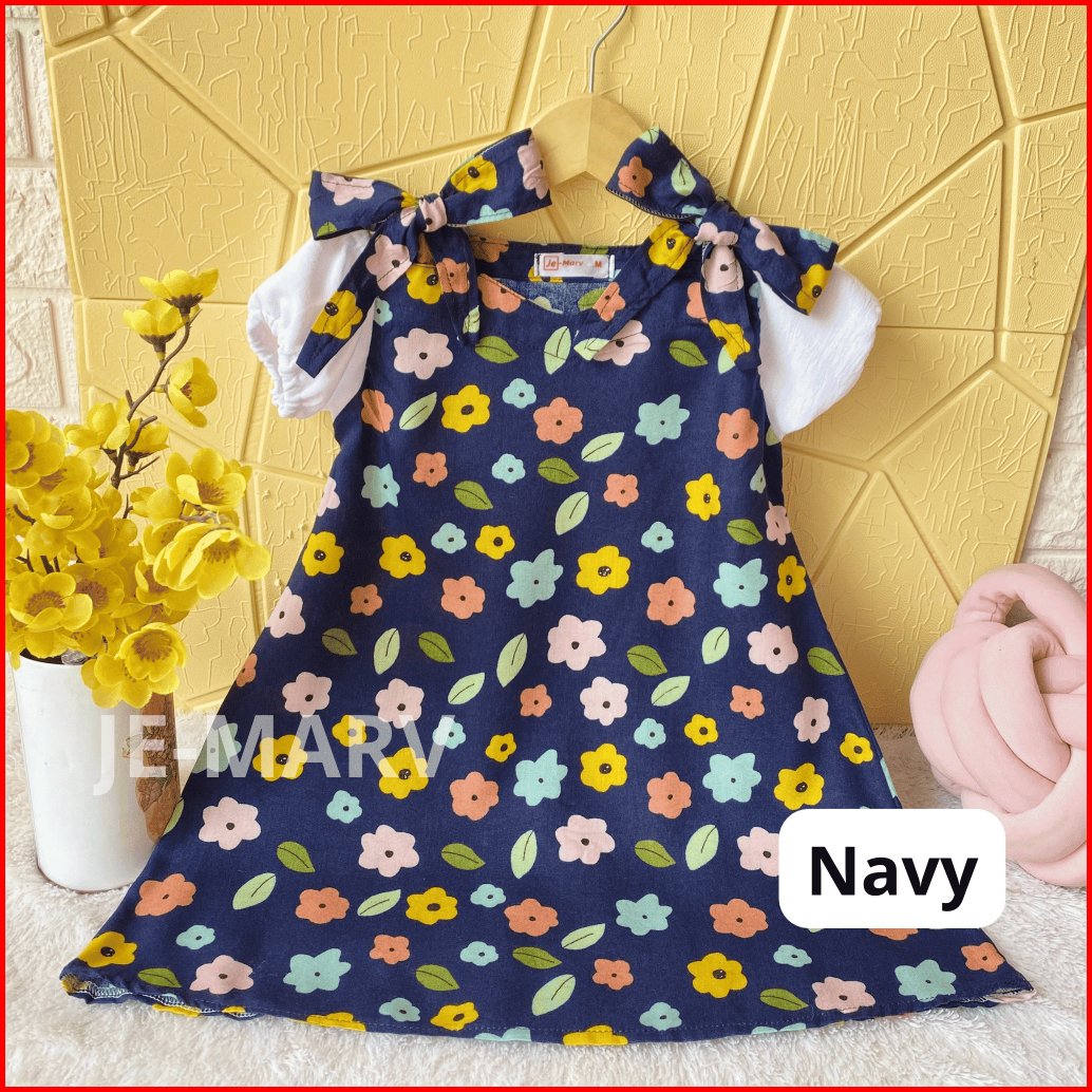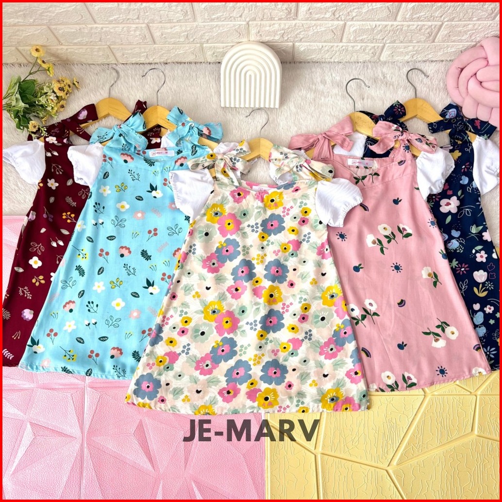 Je-marv. Dress Aliyah - Baju Anak Perempuan Bahan Adem Rayon Motif Bunga Usia 1-8 Tahun Dress Harian Dress Pantai Anak