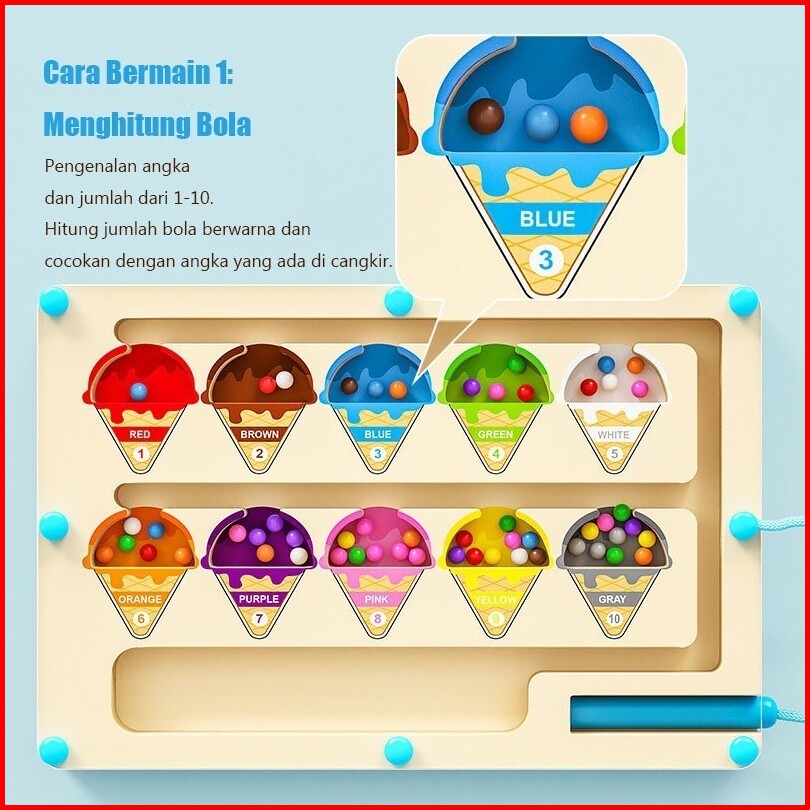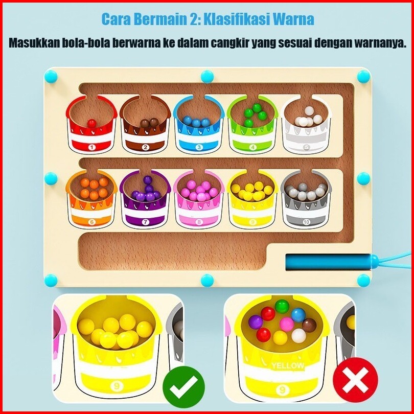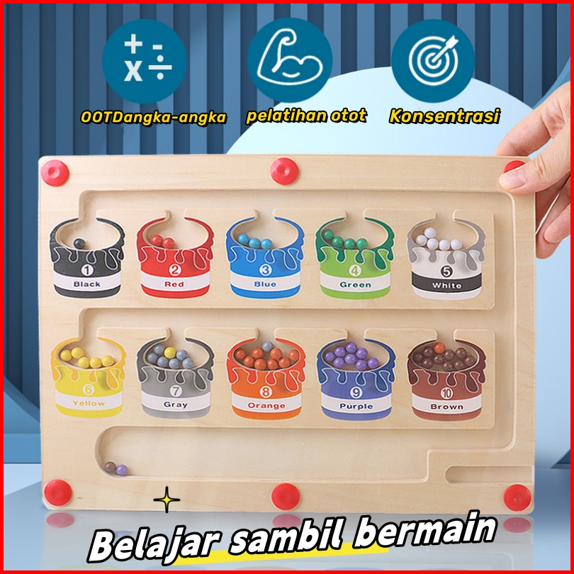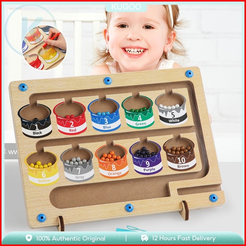 Kugoo Mainan Edukasi Anak Papan Berhitung Magnetic Color Classification Maze Mainan Mainan Sorting Warna Magnet Kayu Pen