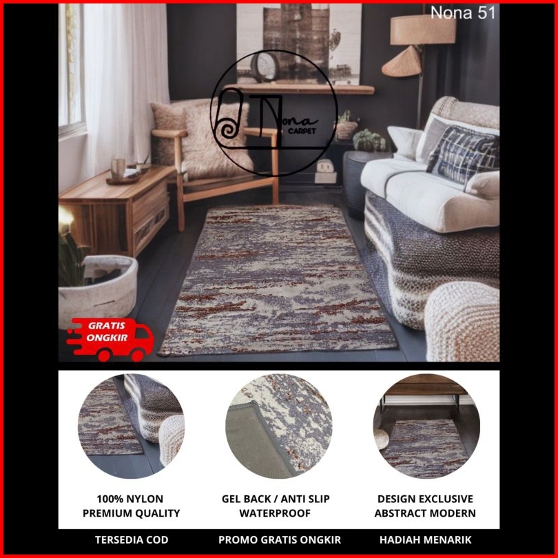 Karpet Premium Abstrak Antislip 100x150cm Nylon Karpet Aesthetic Ruang Tamu Kamar Desain Minimalis