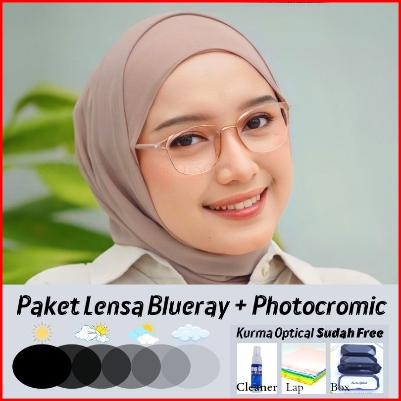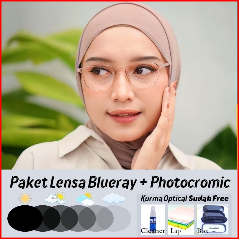 Kurma Optical Frame 5004 Kacamata Minus Wanita Lentur Oval Photocromic Anti Radiasi