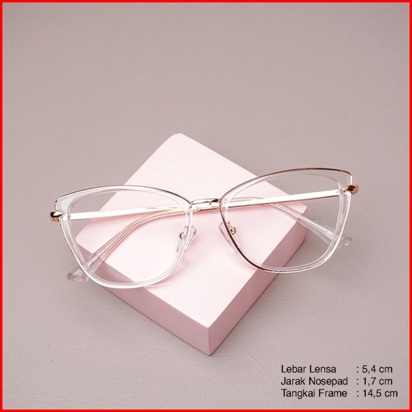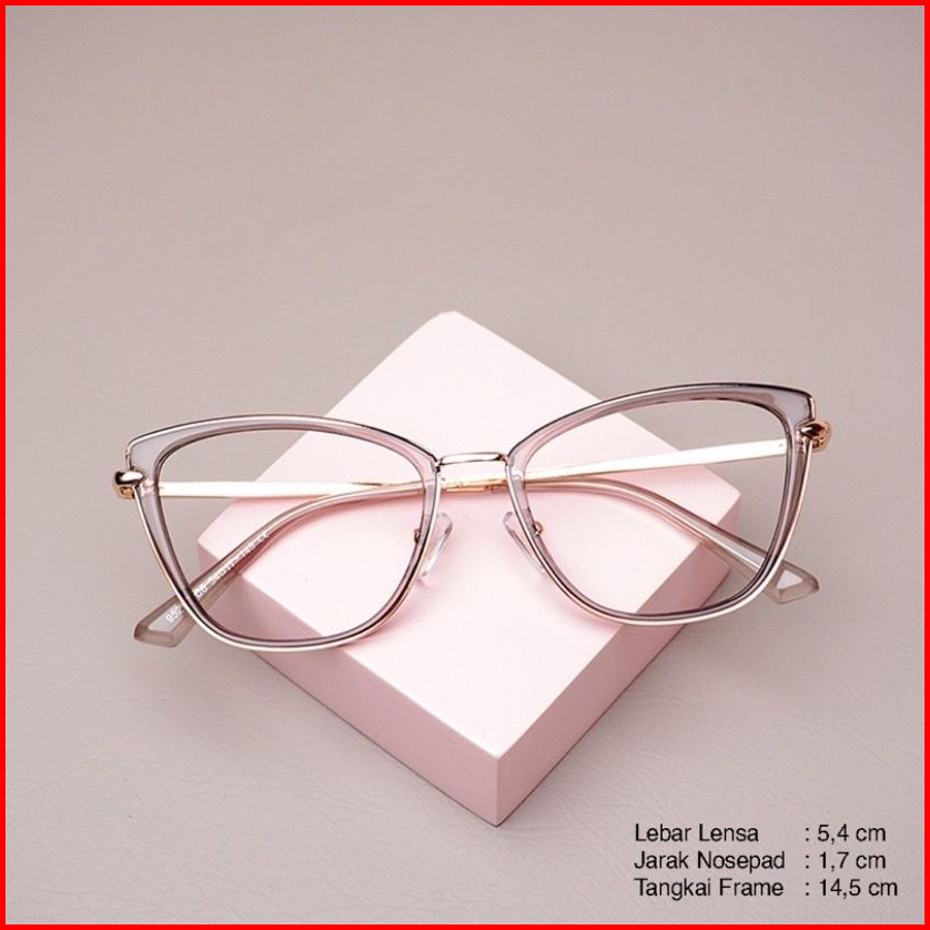 Frame Kacamata Wanita Cat Eye Riku Gratis Lensa Anti Radiasi Kacamata Photocromic Anti Uv Bluecromic Cylinder Free Box D
