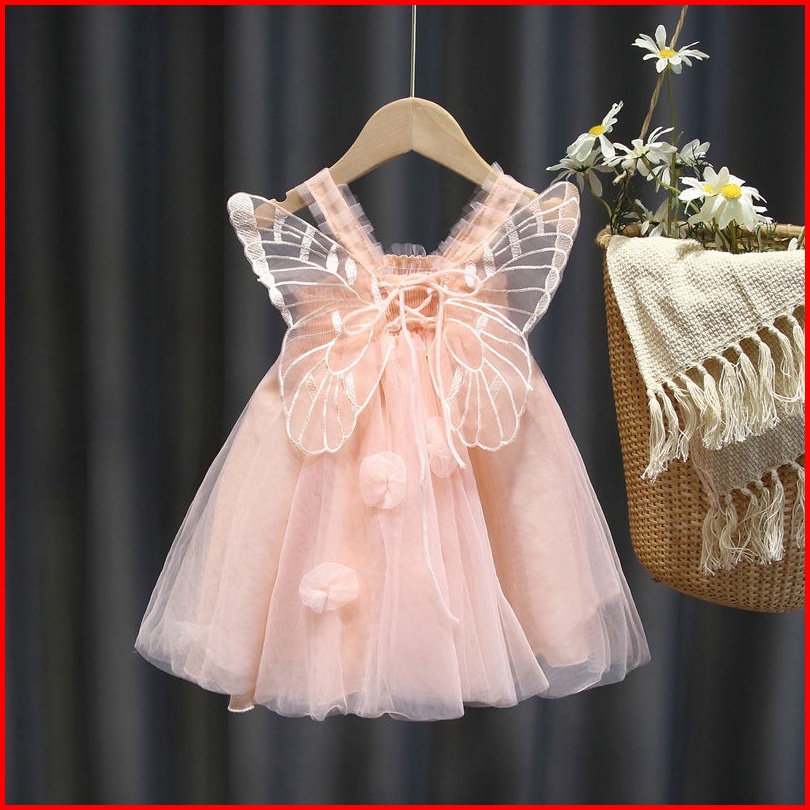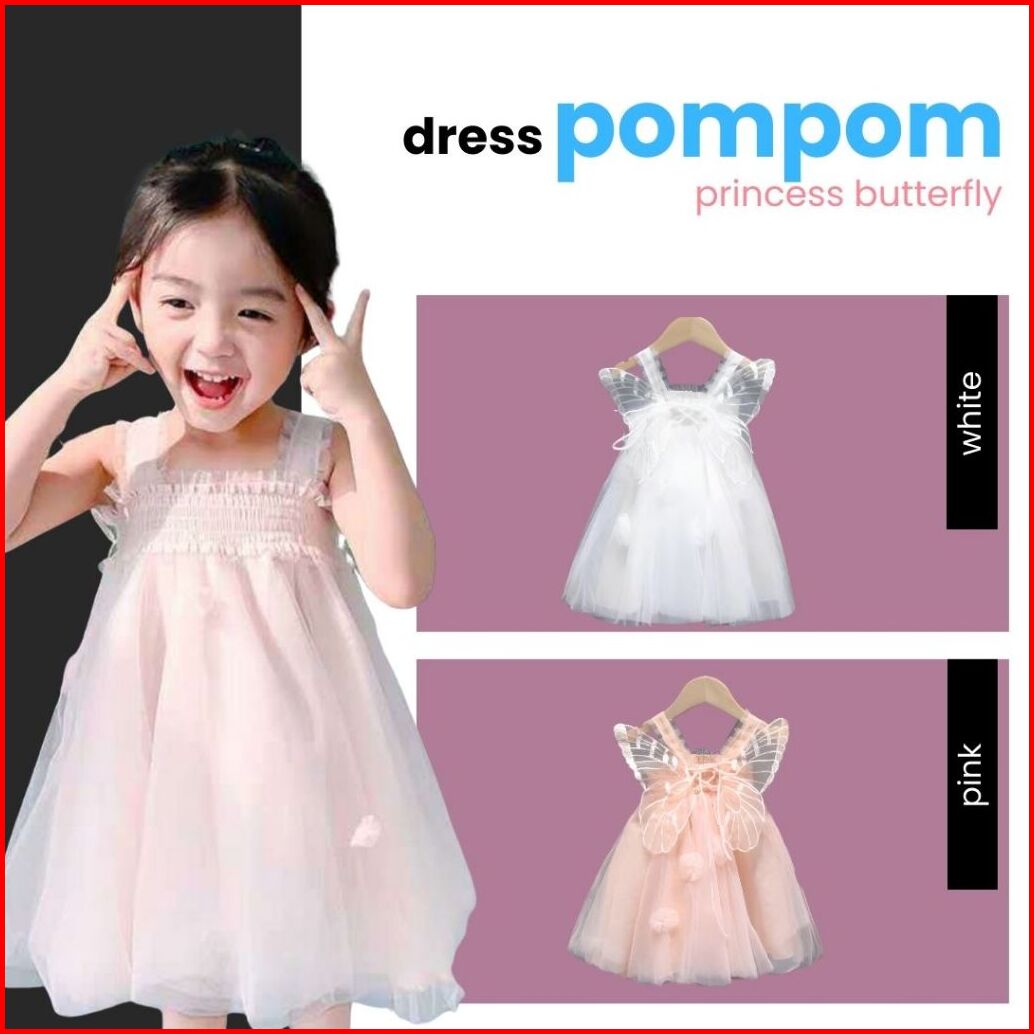 Princesscoco 0-7 Tahun Dress Pompom Pesta Anak Butterfly Perempuan Baju Pesta Princess Kupu-kupu
