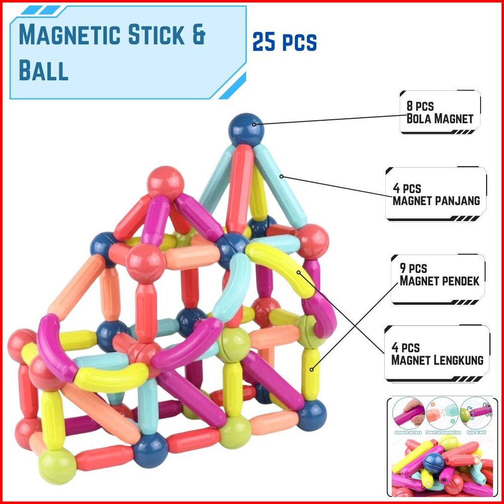 Flashsale Cleair O2 - Mainan Edukasi Anak Magnetic Stick Batang Bola Magnetic Stick Isi 25pcs