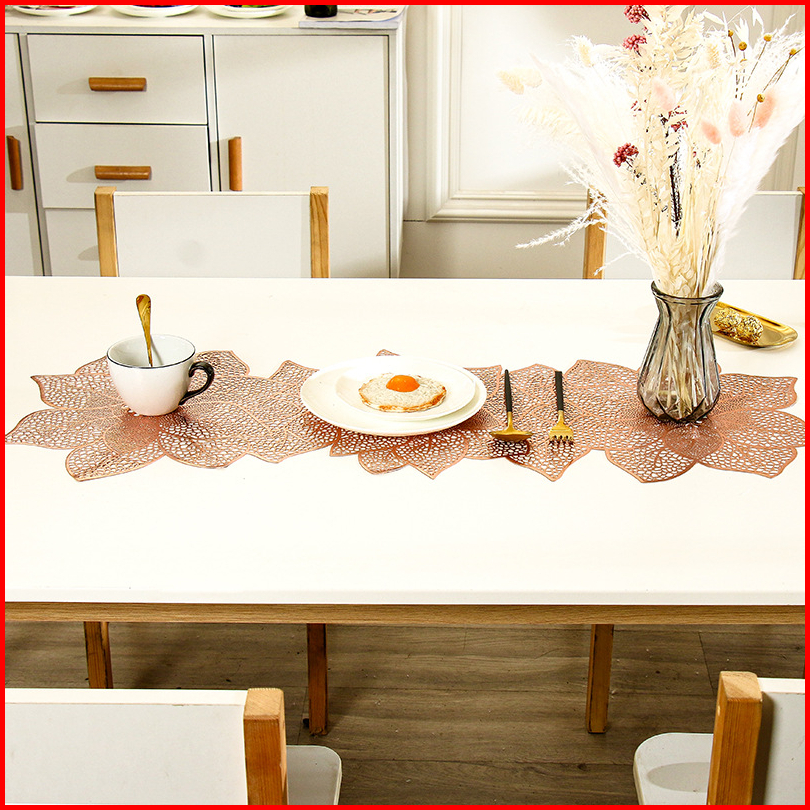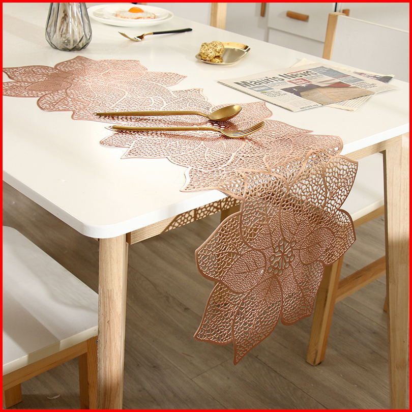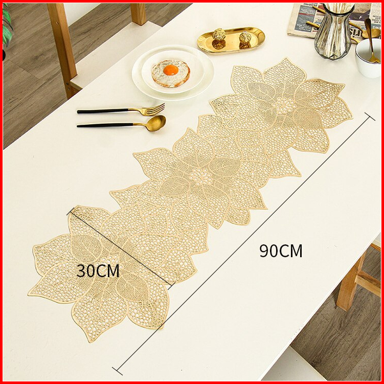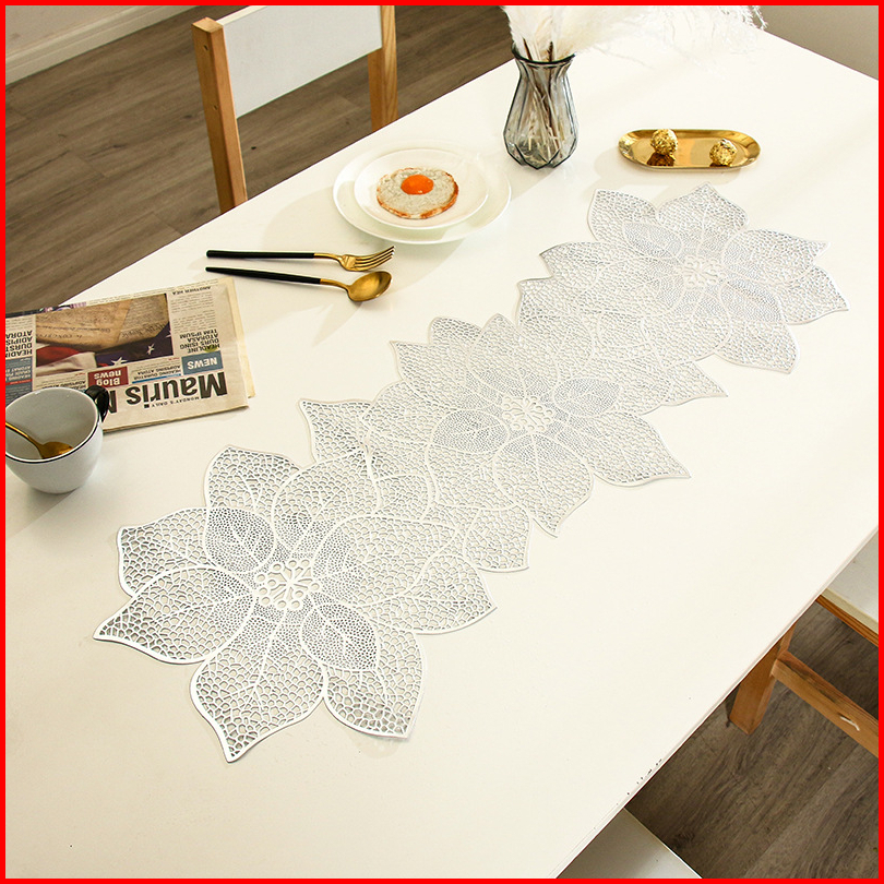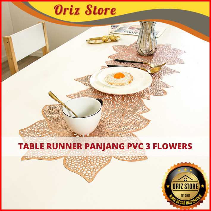 Table Runner Taplak Meja Tamu Makan Panjang Pvc Mewah Motif 3 Flowers