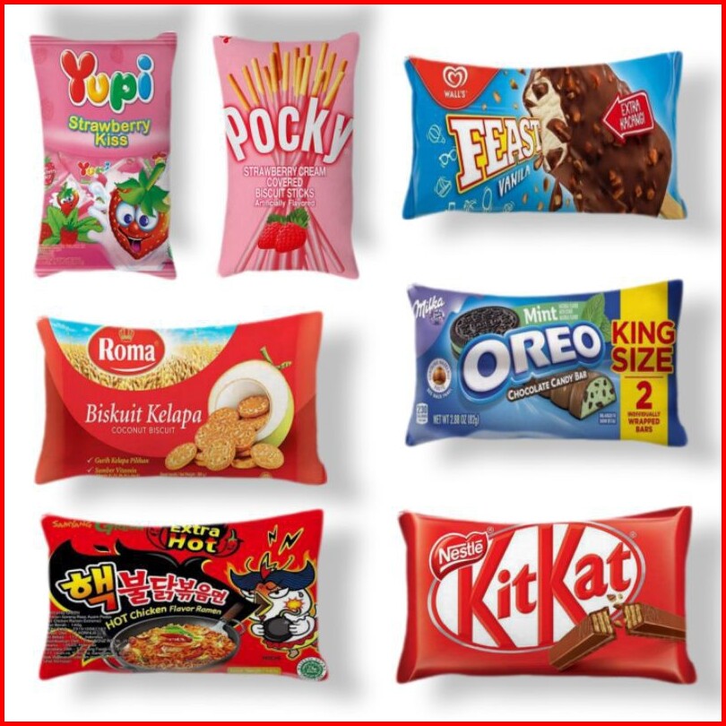 Bantal Motif Snack Jumbo 2 Sisi Uk 50x70 Dan 40x60
