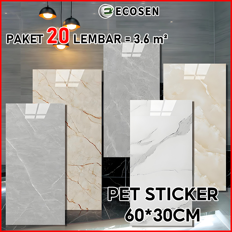 Ecosen Wallpaper Dinding Vinyl 20pcs Lantai Vinyl Marbel Granit 30 X 60 Cm Stiker Lemari Cabinet Marbel