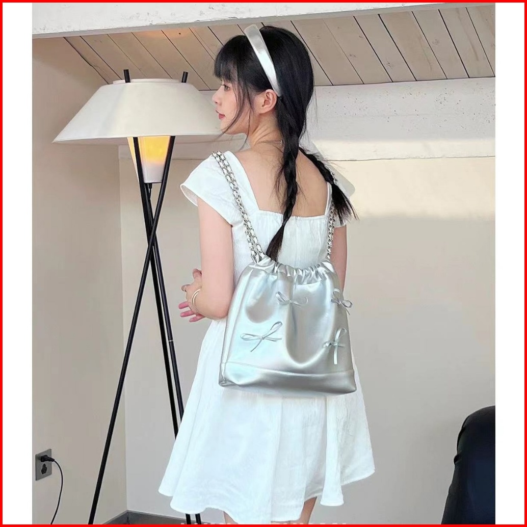 Ready Y2k Tas Bahu Ransel Wanita Kapasitas Besar Permukaan Lembut Kasual Ransel Gaya Baru Tas Ember Bahu Serbaguna Kupu-