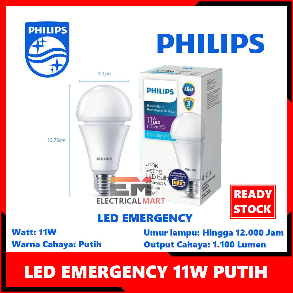Lampu Emergency Led Bulb Rechargeable Philips Led 7.5w 9w Radiantline 8w 11w 13w 7.5 9 8 11 13 W Watt E27 Putih Cool Day