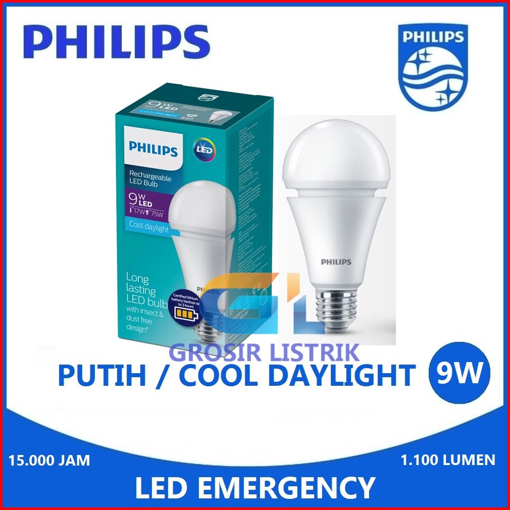 Lampu Emergency Philips Led 9w Putih Cool Daylight Rechargeable Emergensi Cas 9 Watt W Padam Mati
