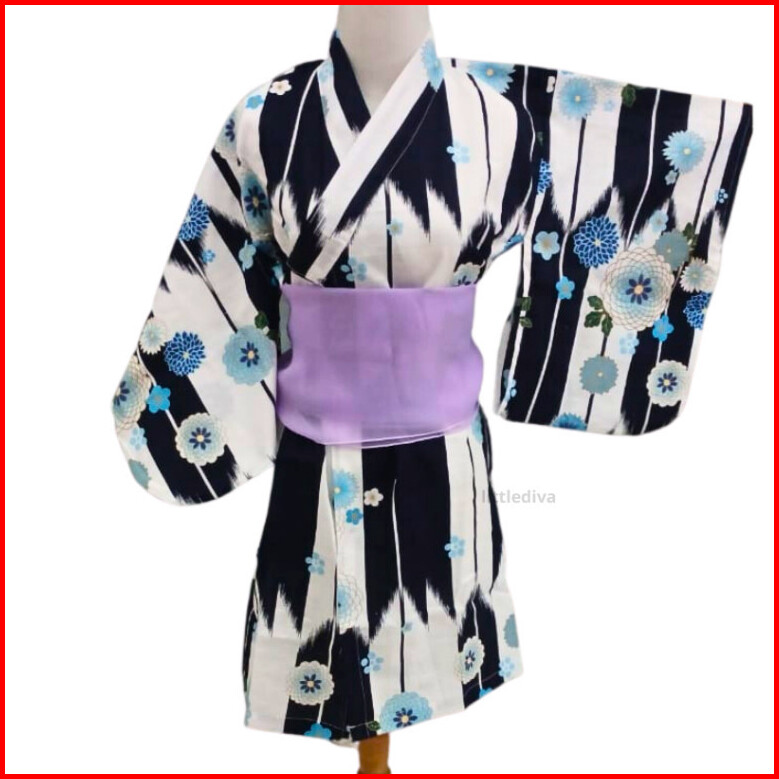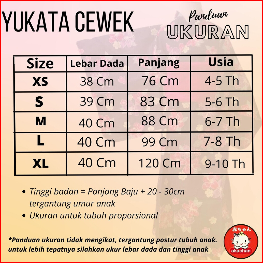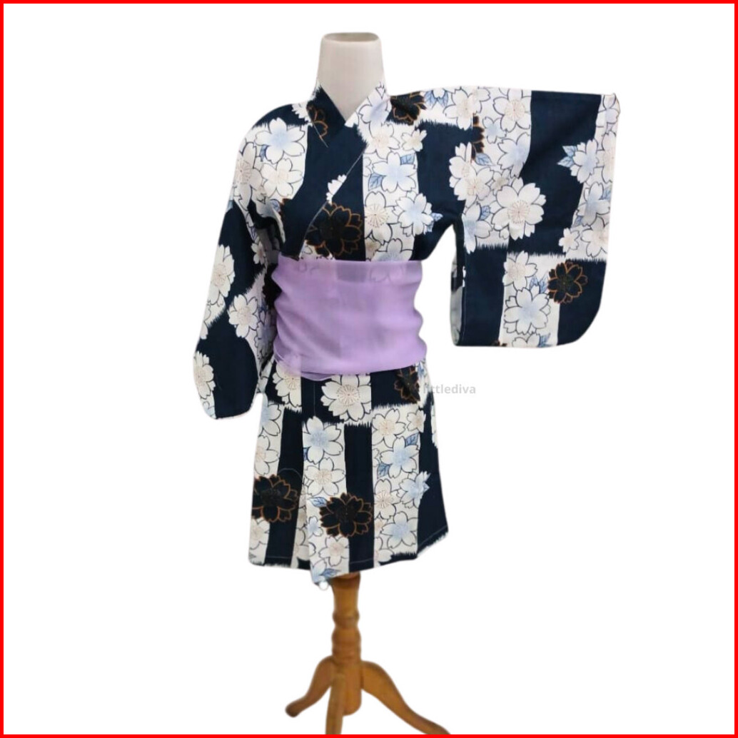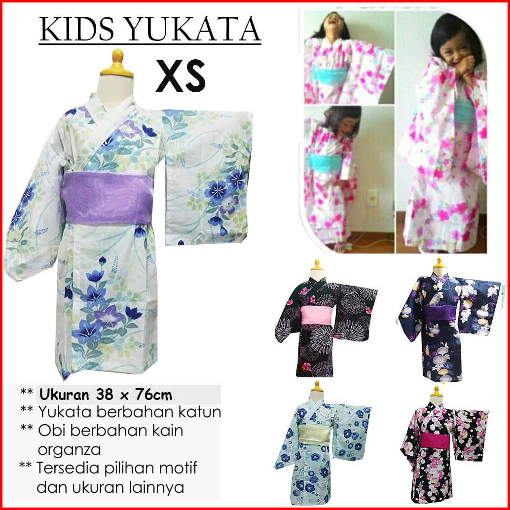 Kid S Yukata Kode 0 - Ah Size Xs S M L Japan Summer Kimono Akachan Anak Cewe Obi Baju Jepang