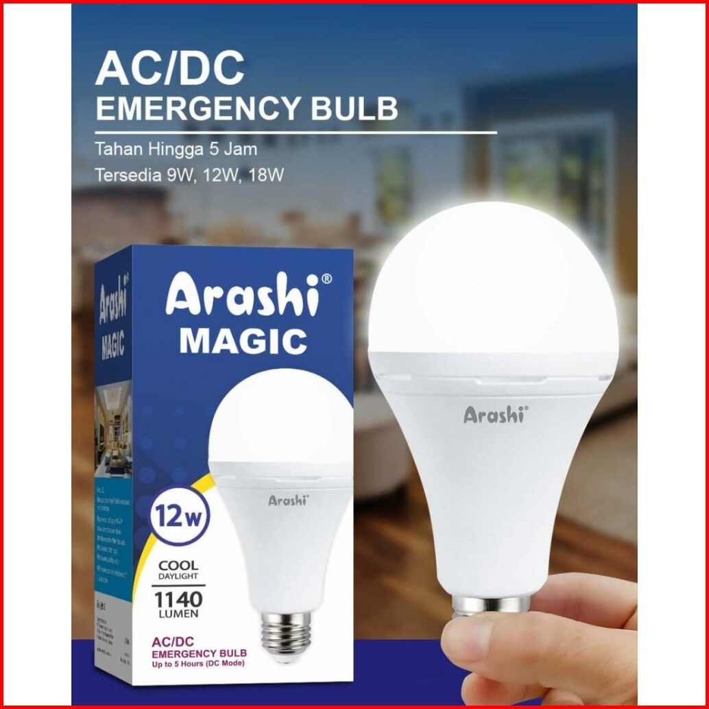 Lampu Emergency Led Arashi Magic 18w 12w 9w 18 W 12 W 9 W Bohlam Lampu Listrik Mati Darurat