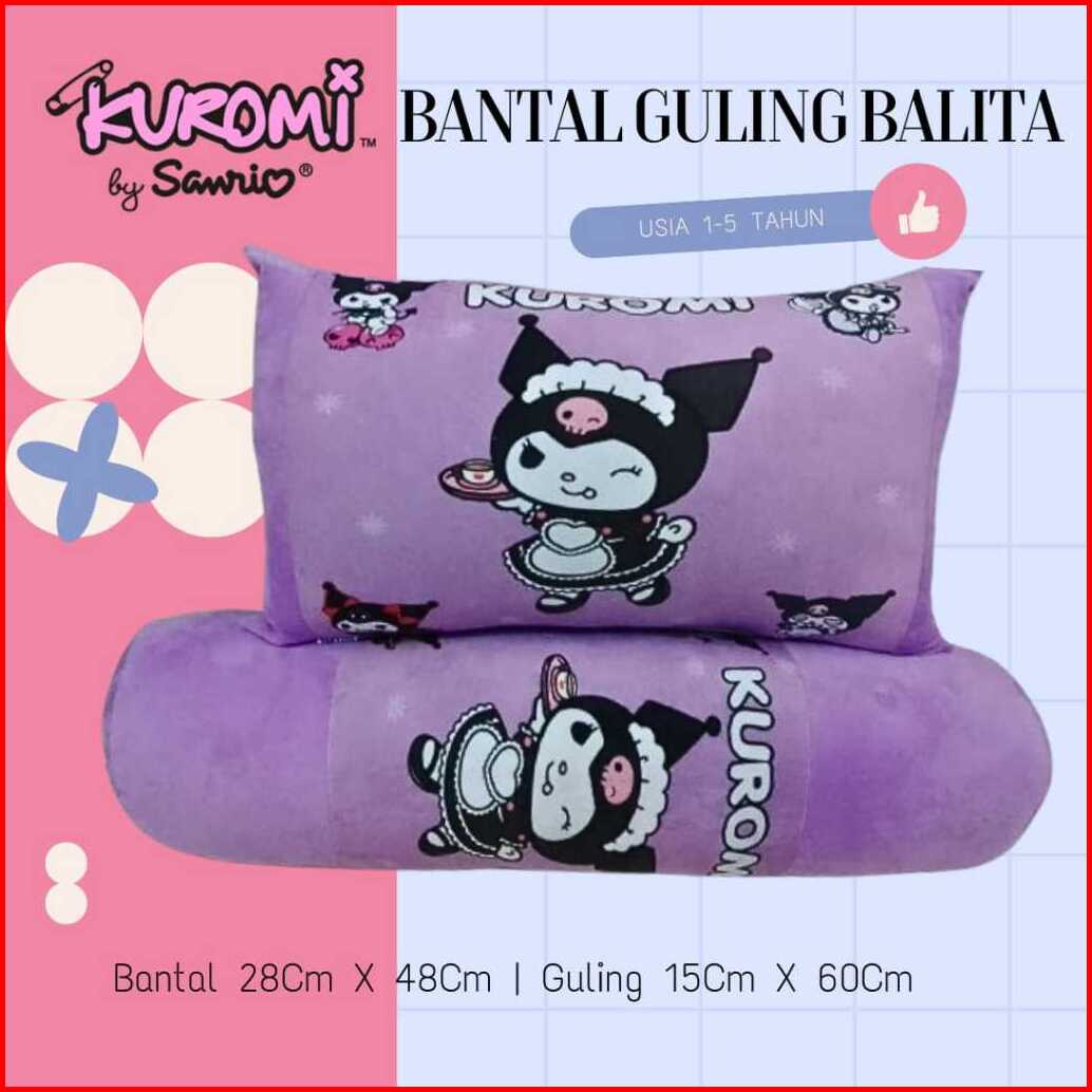 Bantal Guling Anak Balita Set Kuromi Ungu Muda Bahan Halus Lembut