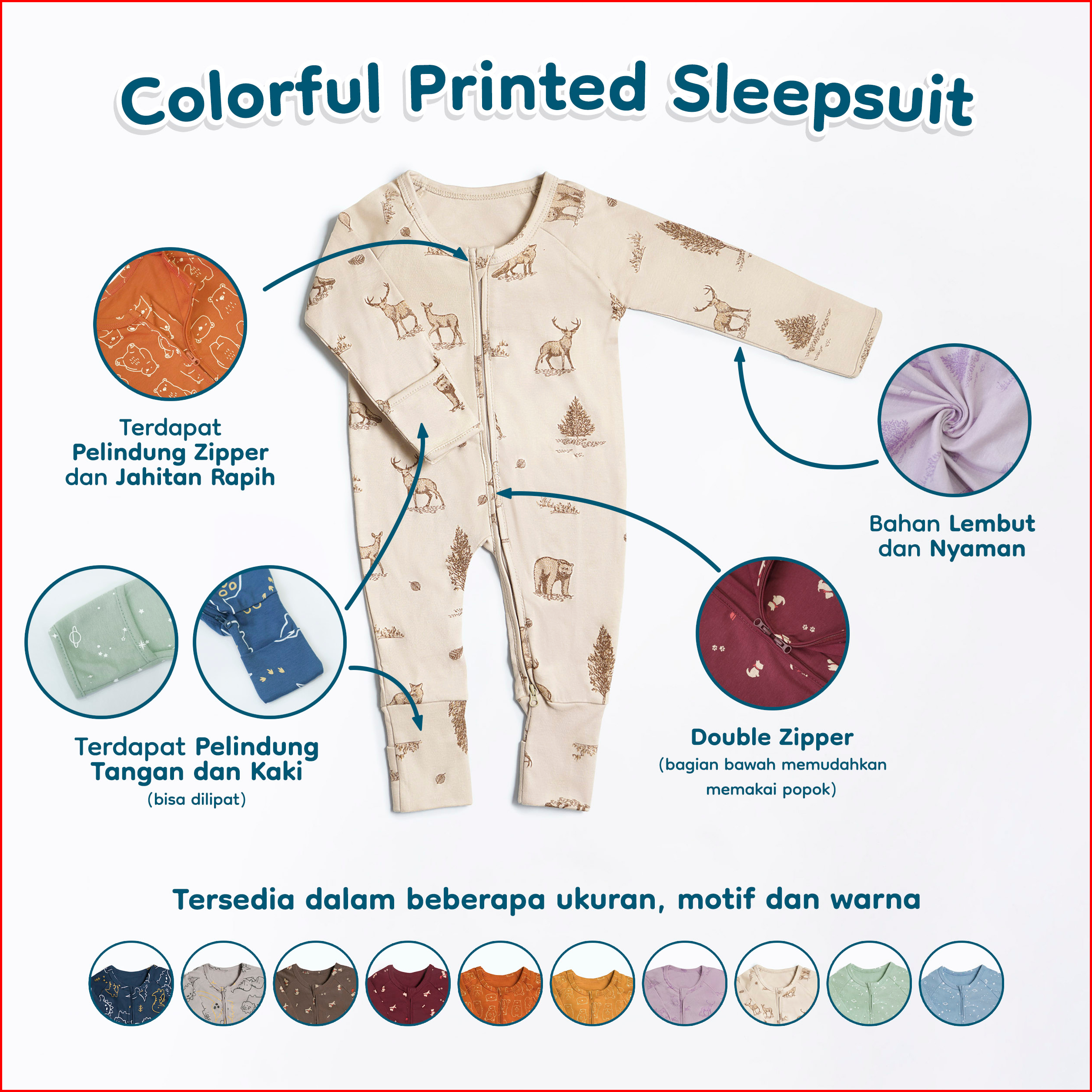 Nice Kids - Colorful Printed Sleepsuit Romper Baju Tidur Motif Anak Bayi