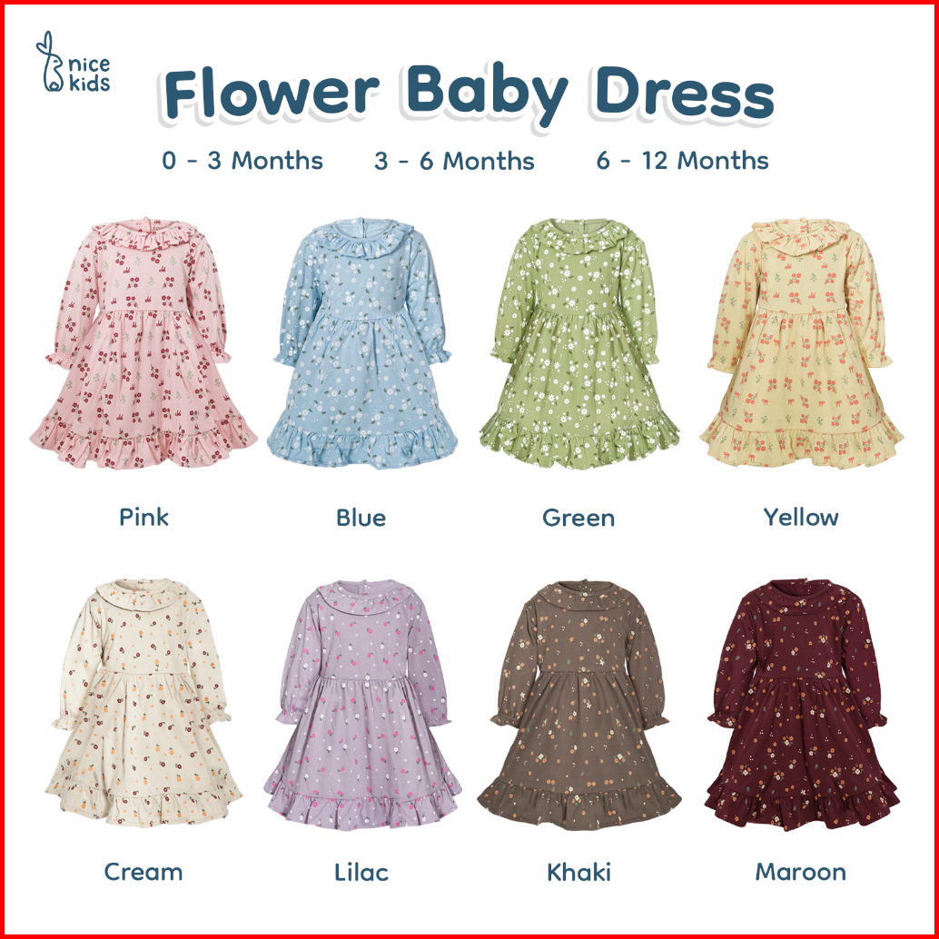 Nice Kids - Baby Flower Dress Terusan Bunga Lengan Panjang Anak Bayi