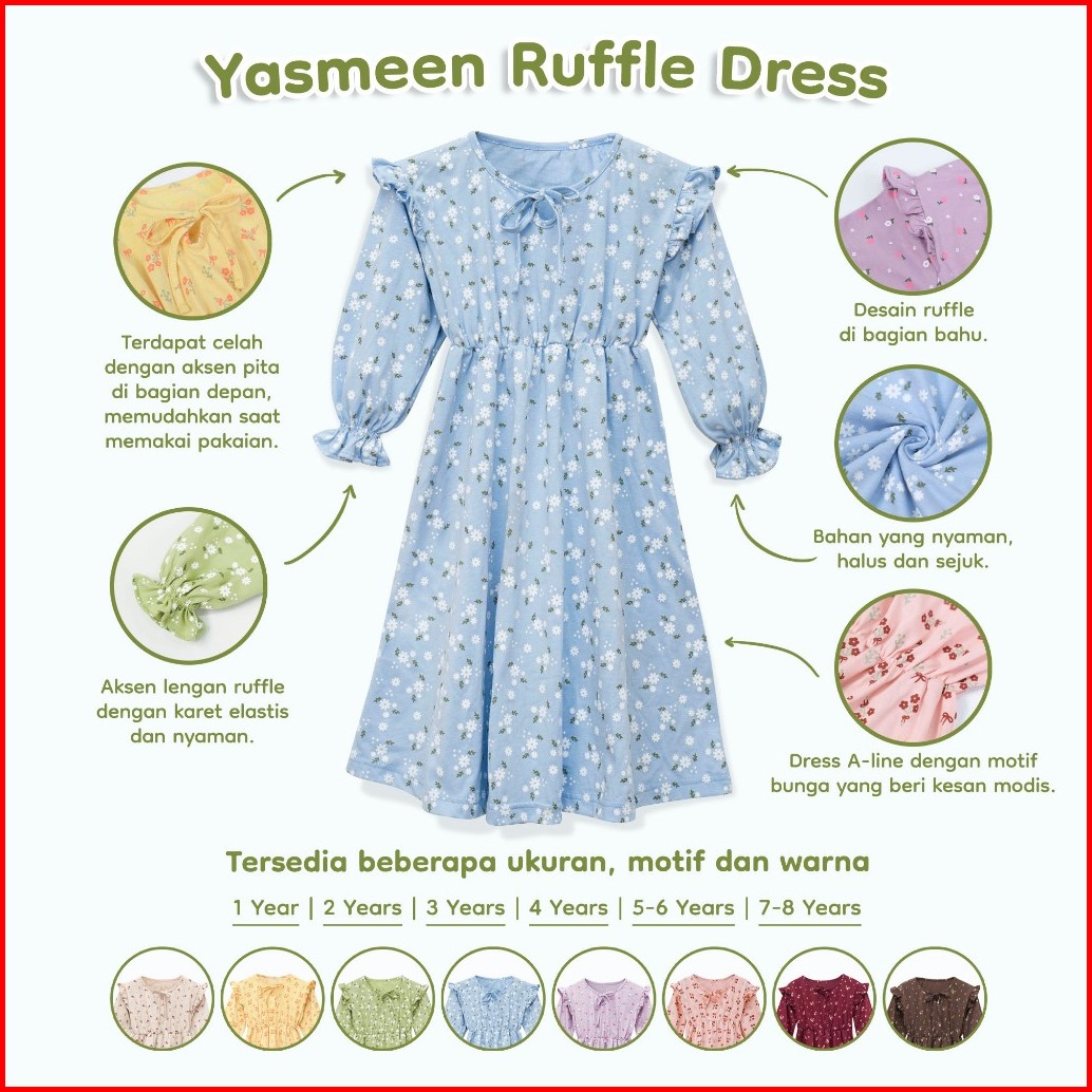 Nice Kids - Yasmeen Ruffle Dress Toddler Girl Terusan Lengan Panjang Anak Perempuan