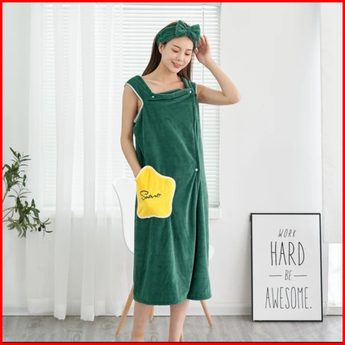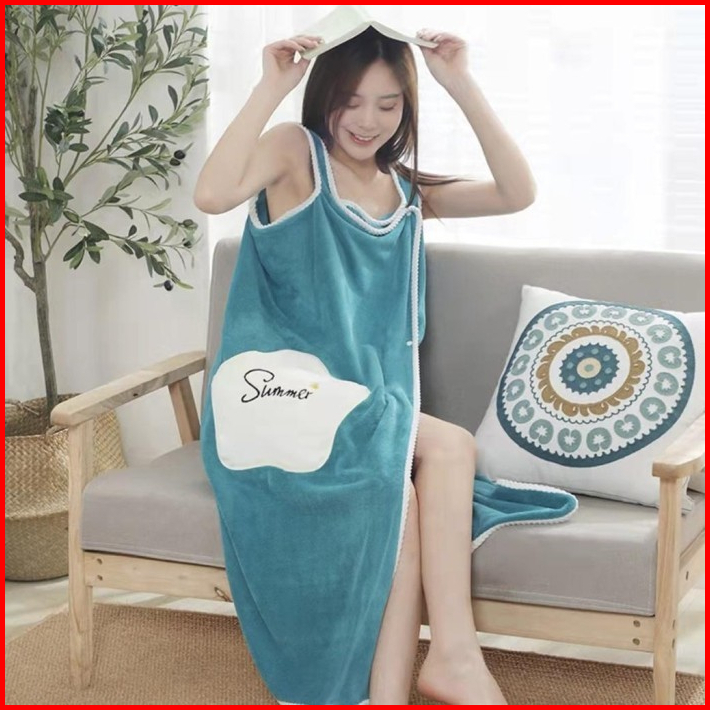 Handuk Mandi Wearable Towel Jubah Mandi Wanita Dewasa Kimono Handuk Bulu Dewasa
