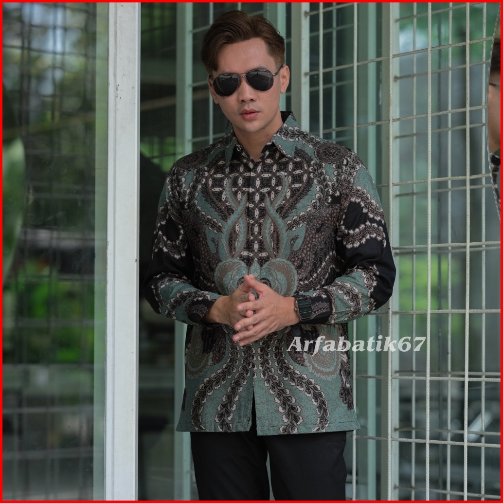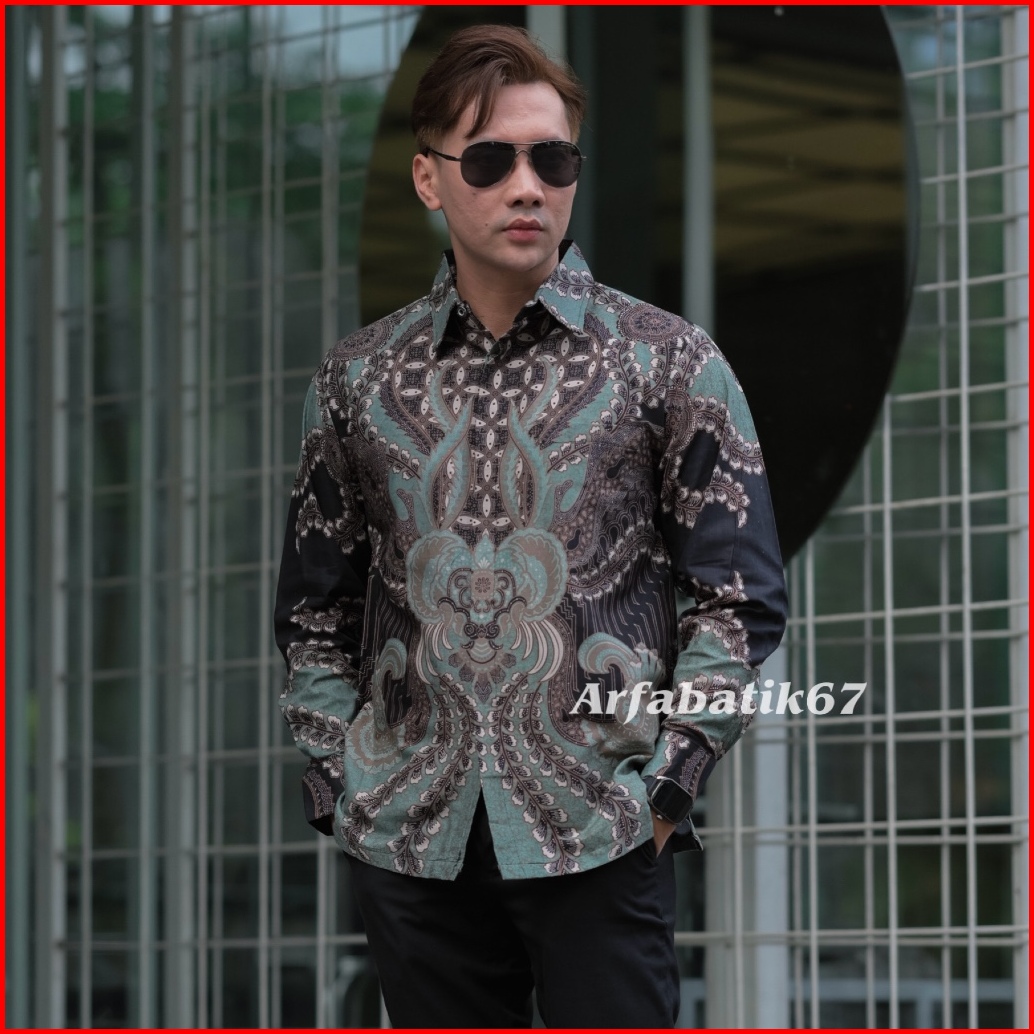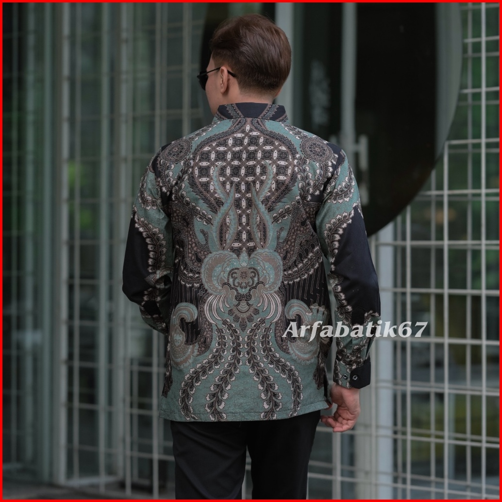 Abimanyu Sage Green Kemeja Batik Pria Lengan Panjang Katun Solo Lapis Furing Jahitan Rapi By Arfabatik67