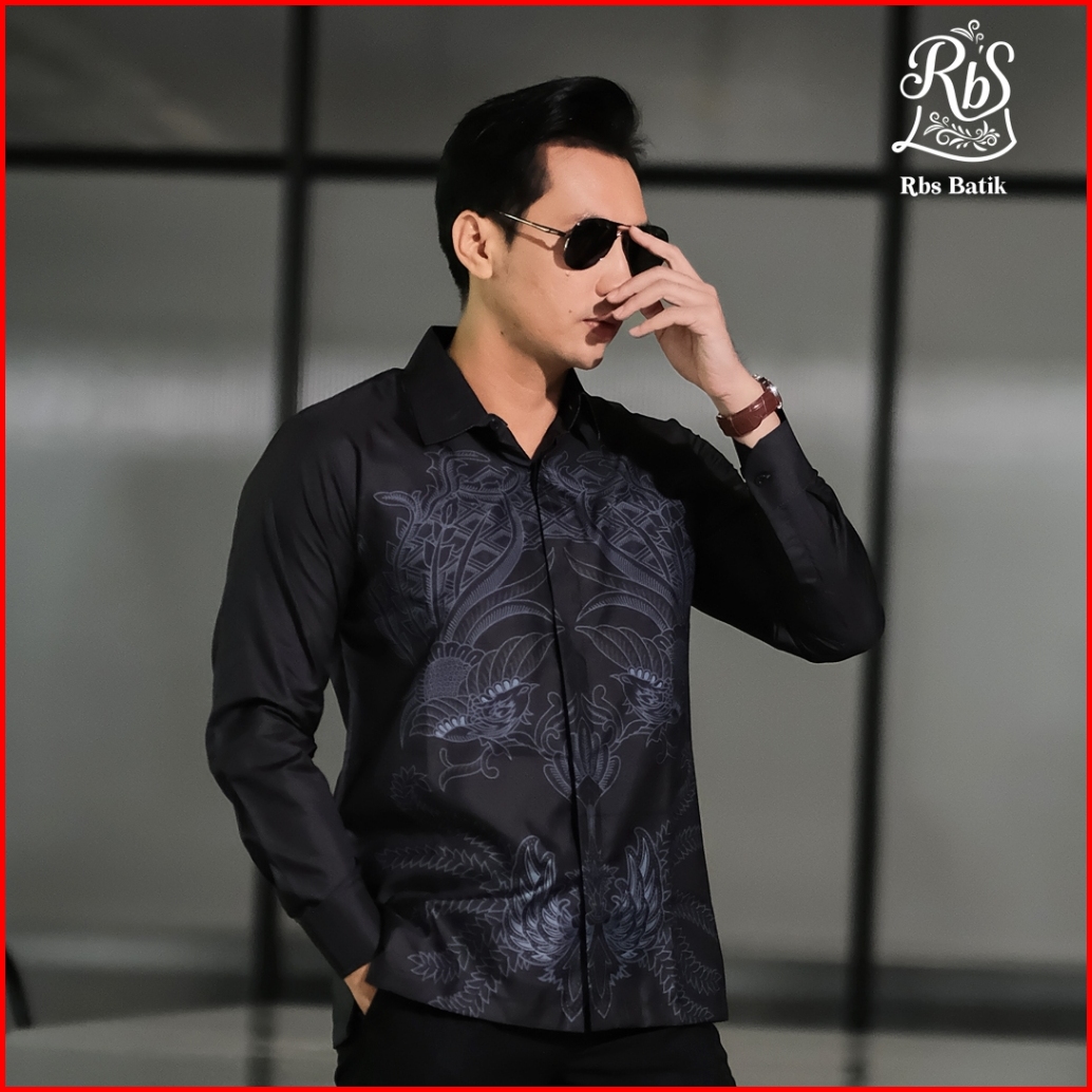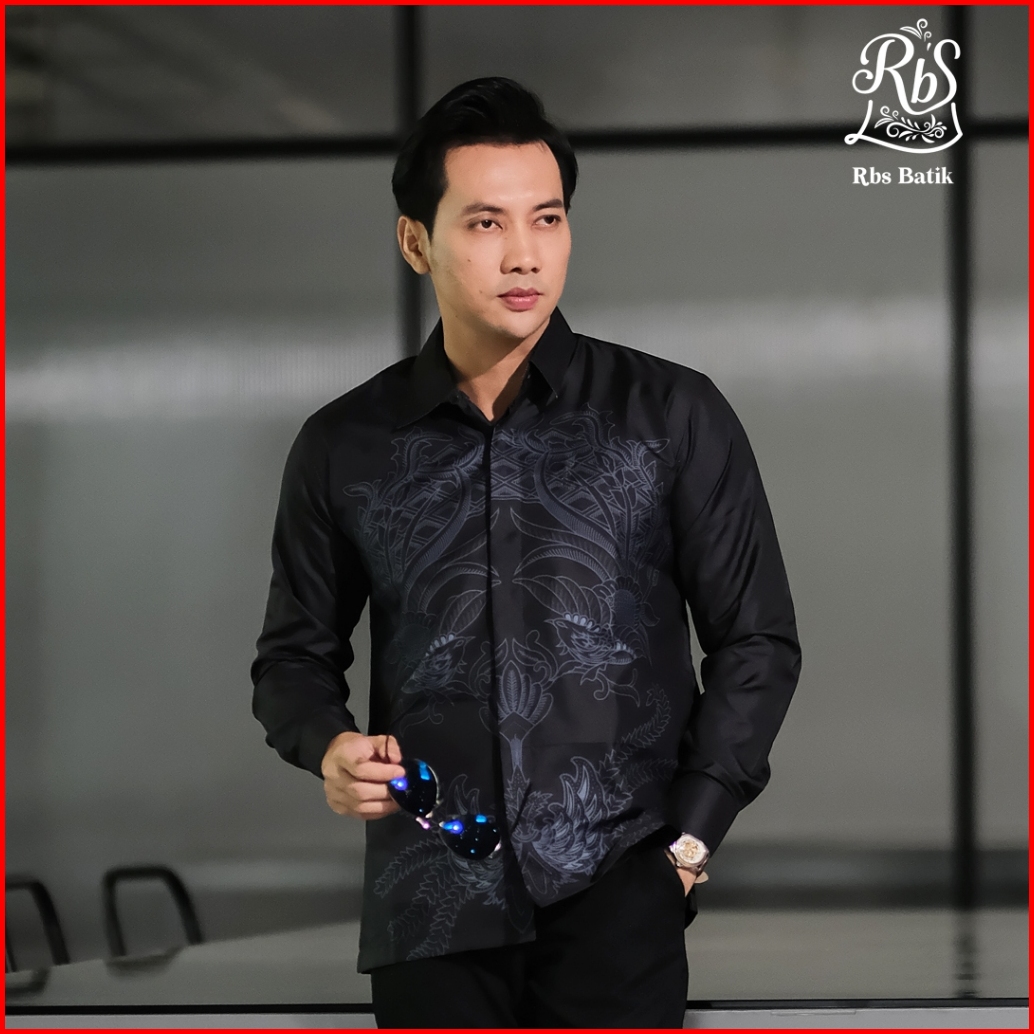 Rbs Batik - Kemeja Batik Pria Devanka Slimfit Lapis Furing Warna Hitam Biru Semi Abu Motif Gurdo