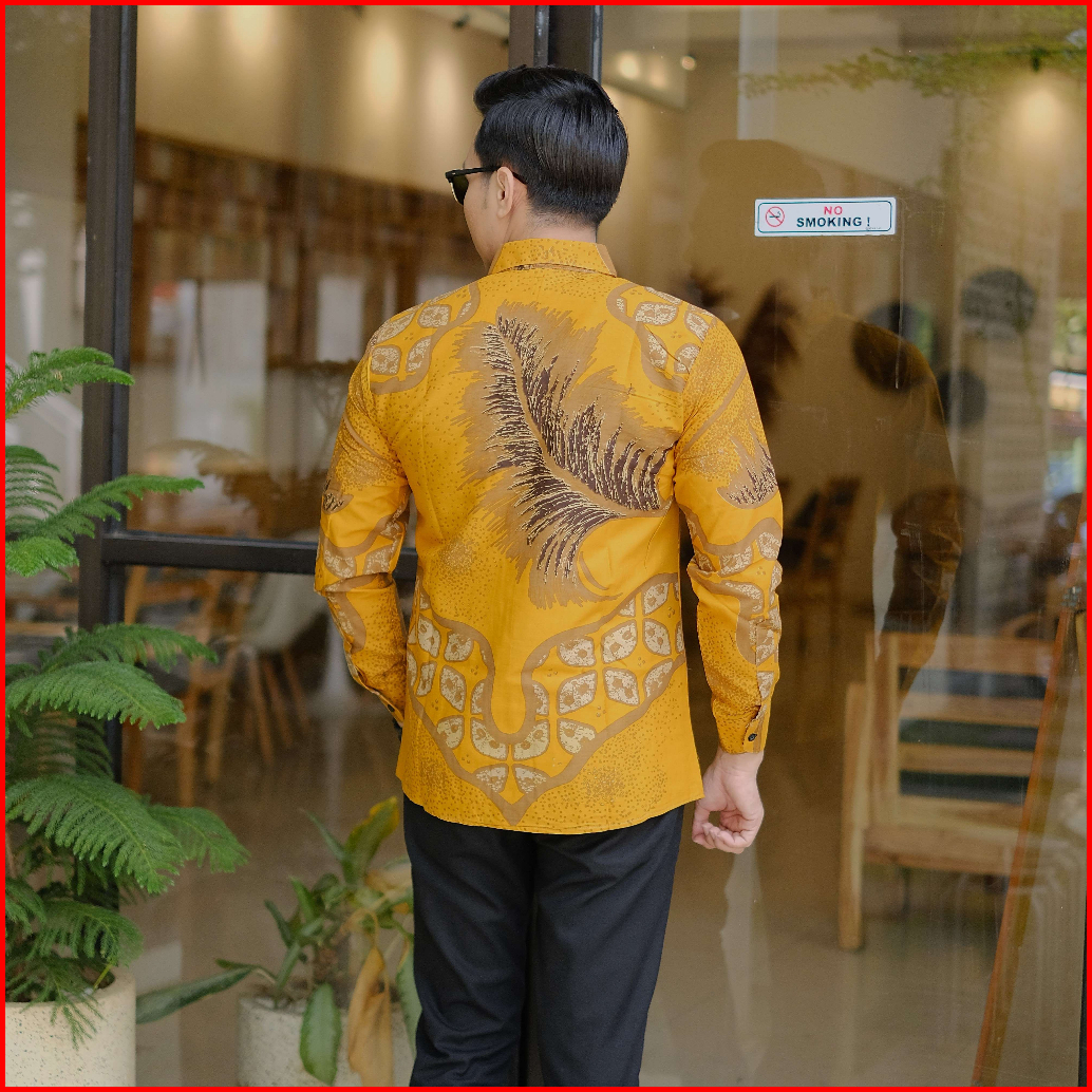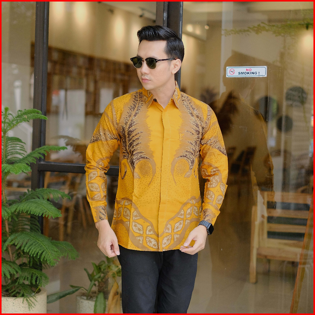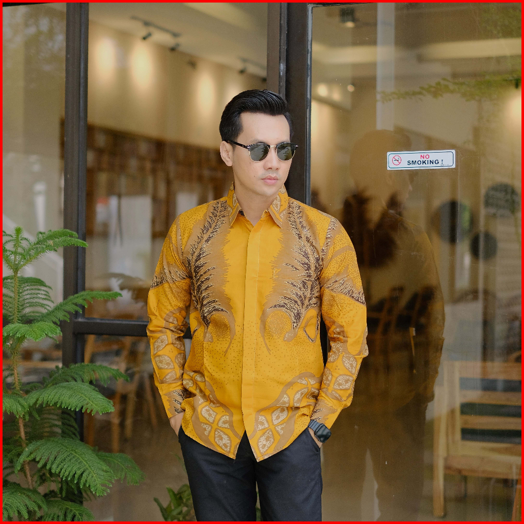 Baru..atasan Kemeja Hem Pria Baju Batik Lengan Panjang Lapis Furing Bahan Premium Wulu Kuning