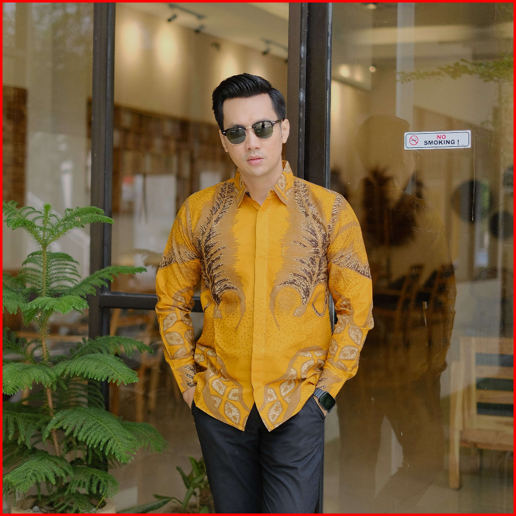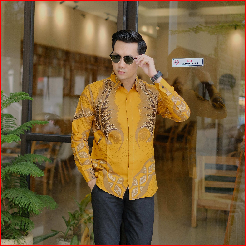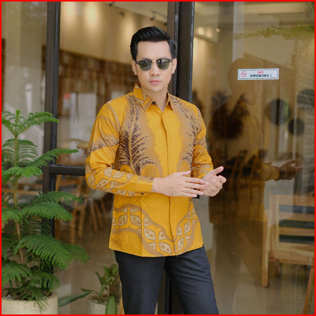 Baru..atasan Kemeja Hem Pria Baju Batik Lengan Panjang Lapis Furing Bahan Premium Wulu Kuning