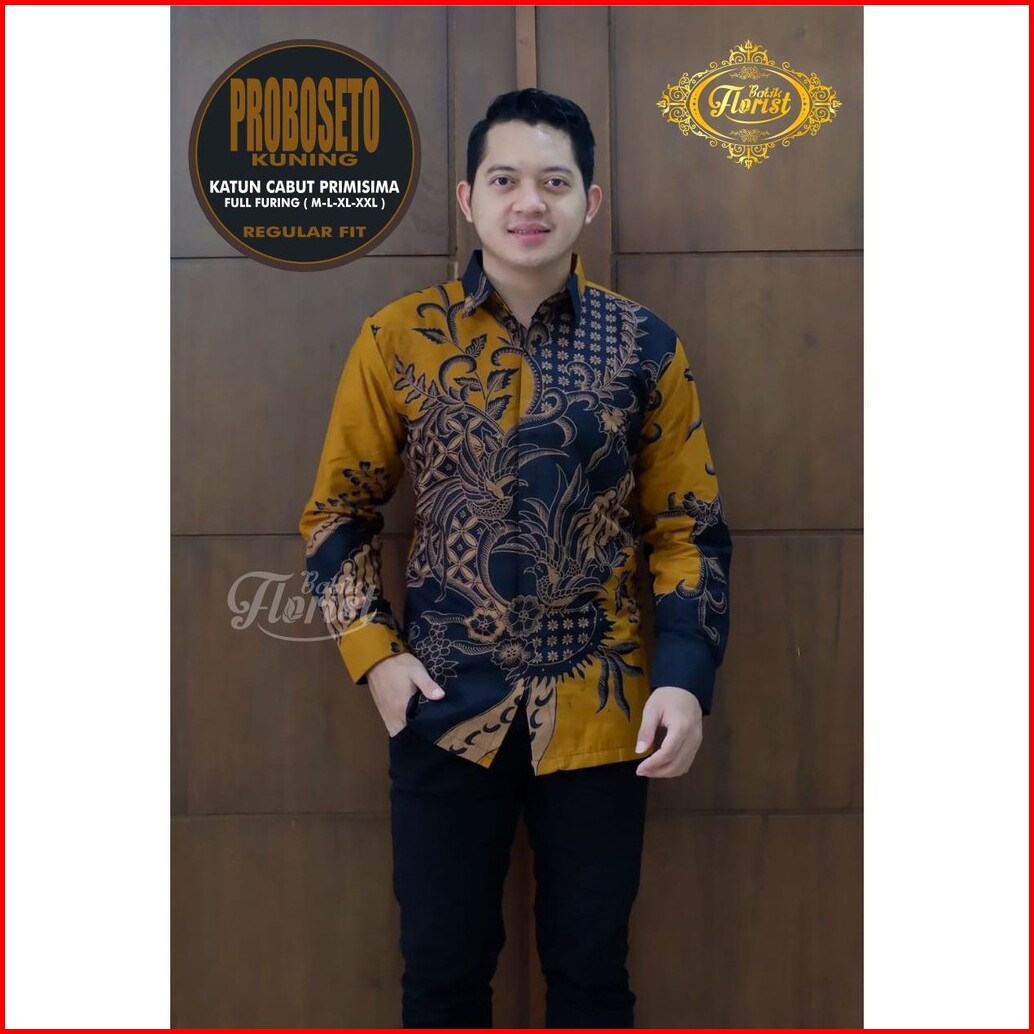 Proboseto Kuning Kemeja Batik Pria Full Furing Bahan Katun Cabut Primisima