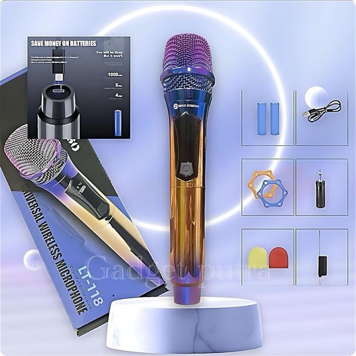 Mic Wireless LT-118 Rainbow With Receiver 1 Mik Bluetooth Multi Michrophone Tanpa Kabel Bisa Charger Anti Noise