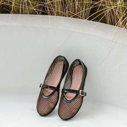 FlatShoes Wanita Balet Fishnet Mary Jane Flatshoes Jaring Net Korean Style SAHIKU - Brielle Mesh