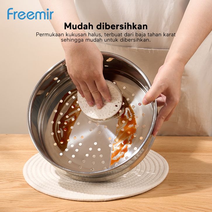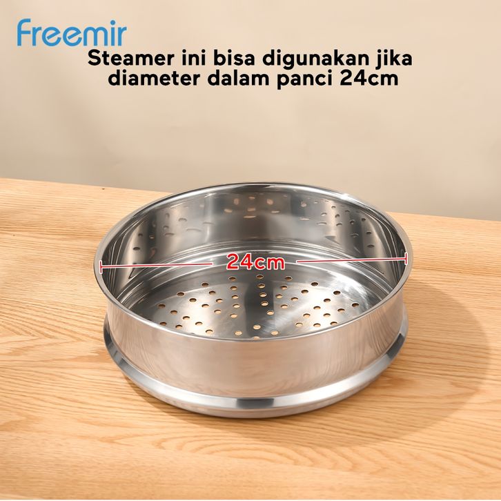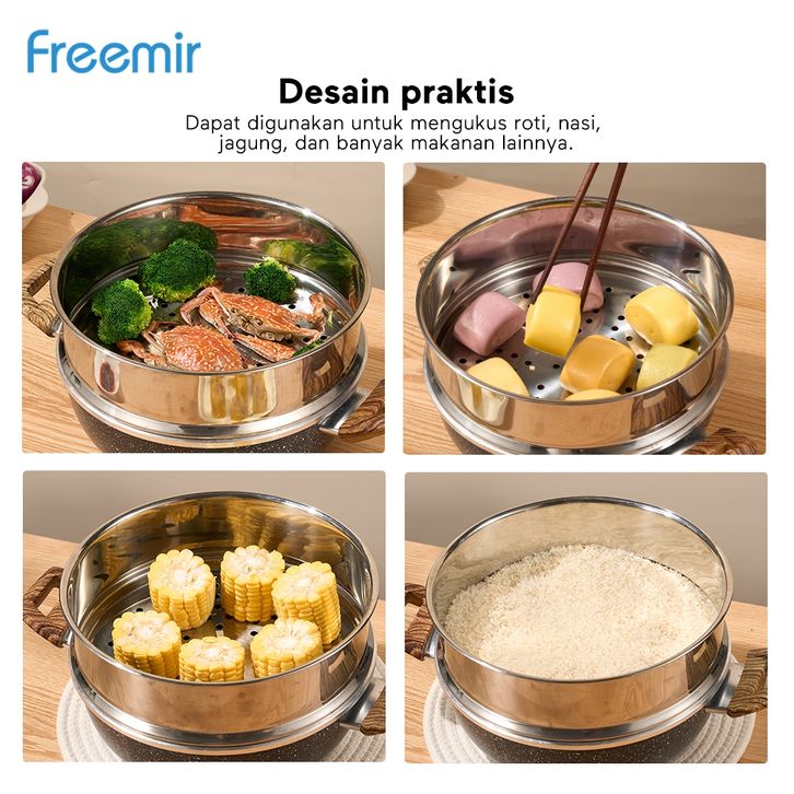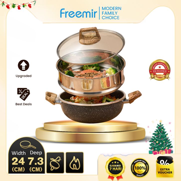 gratis ongkir freemir 2in1 Multifunctional Wokpan + Steamer 24 Cm Beige/Black Wajan Panci Anti Lengket Kuping + Kukusan