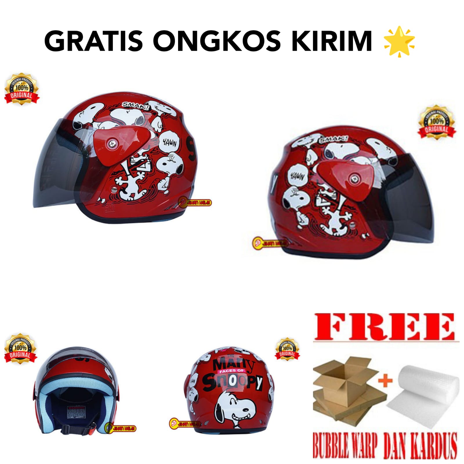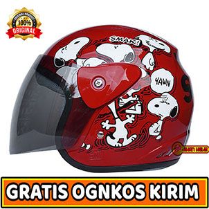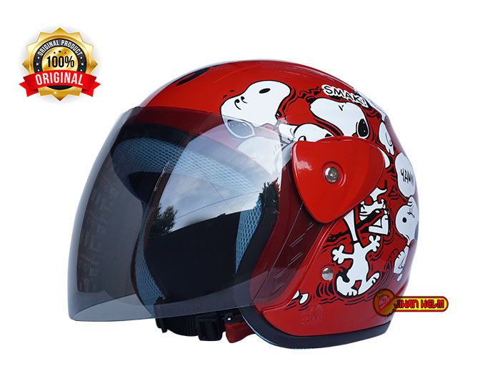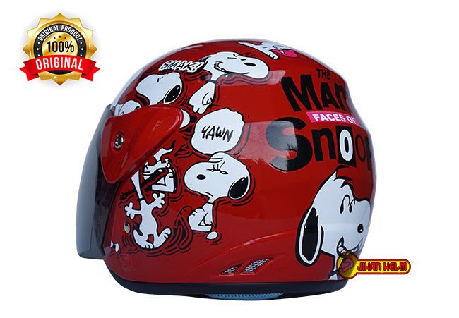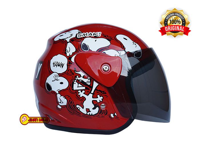 HELM MOTOR HALF FACE PRIA WANITA ORIGINAL SNI / HELM JM EVO WANITA / HELM JM EVO WANITA SNOOPY RED TERMURAH