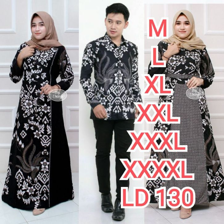 GAMIS LD 110 120 130 COUPLE SARIMBIT KEMEJA BATIK PUTIH KOMBINASI POLOS JUMBO XXXXXL
