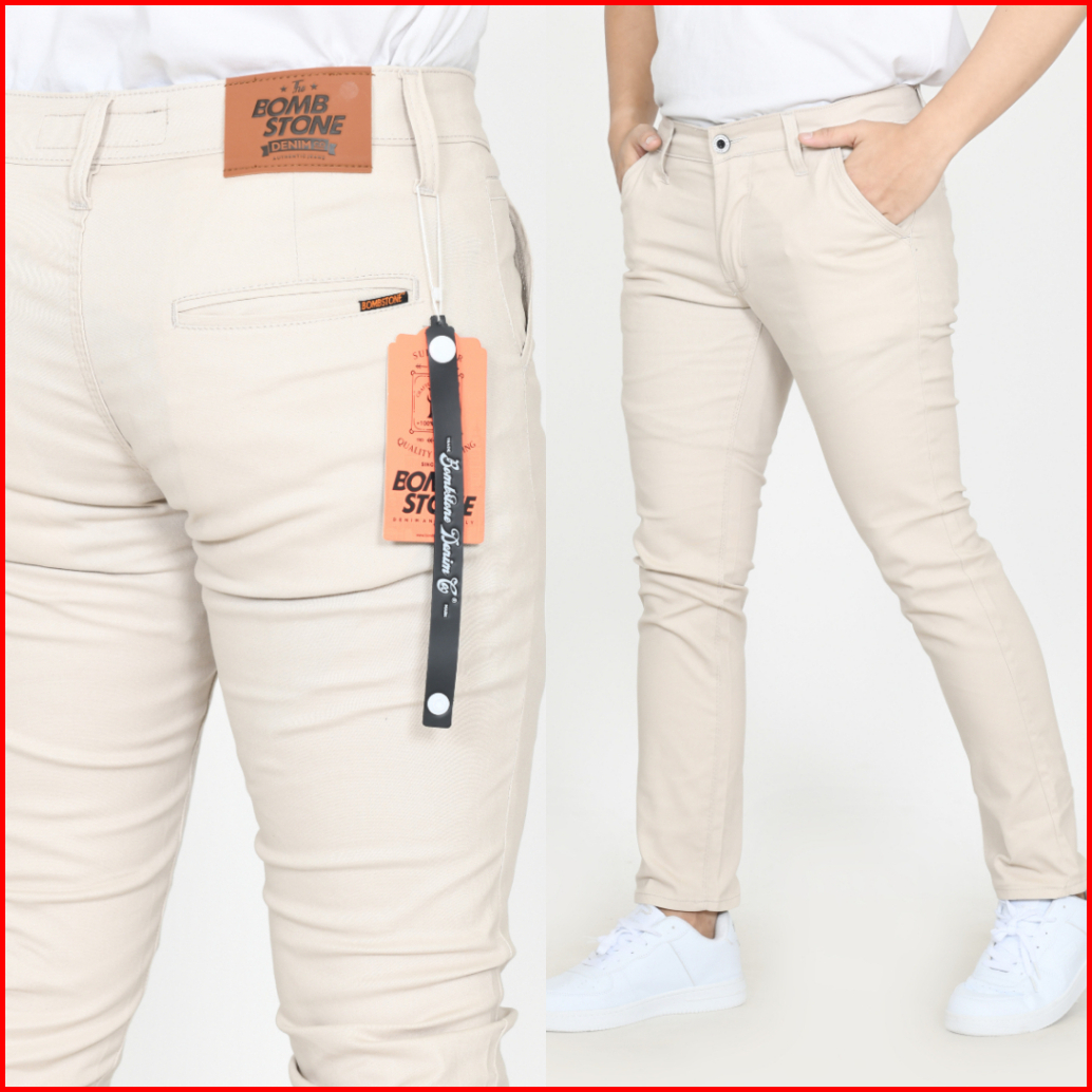 Bombstone Celana Chino Panjang Pria Slimfit Katun Stretch Melar