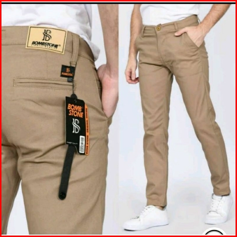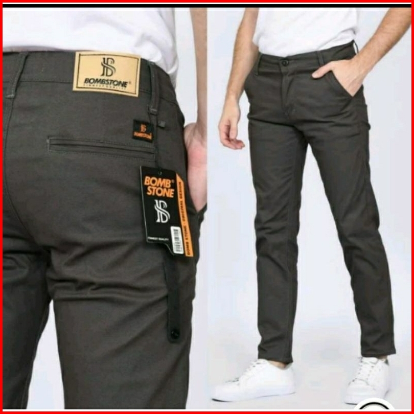 Bomstone Denim - Celana Chinos Pria Slimfit Stretch Celana Katun Pria Original