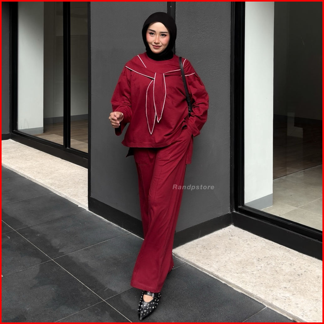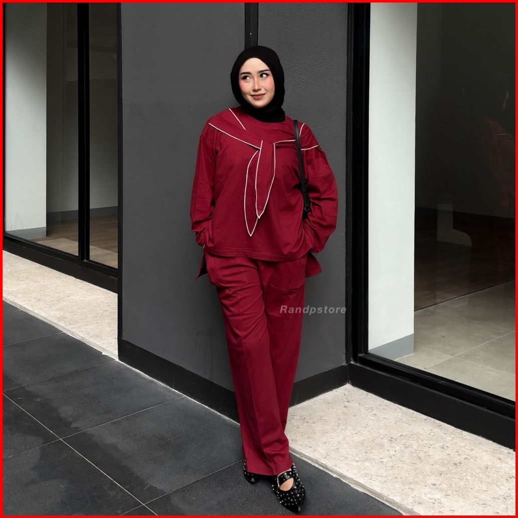 Randpstore - Meera One Set Tshirt Katun Combad - Setelan Wanita Kulot