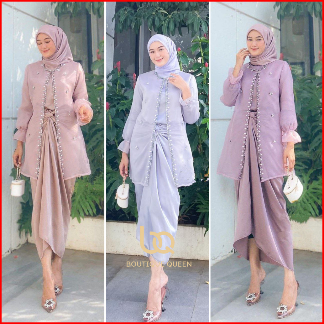 Oneset Jemma Organza Premium Outfit Kondangan Setelan Rok Lilit