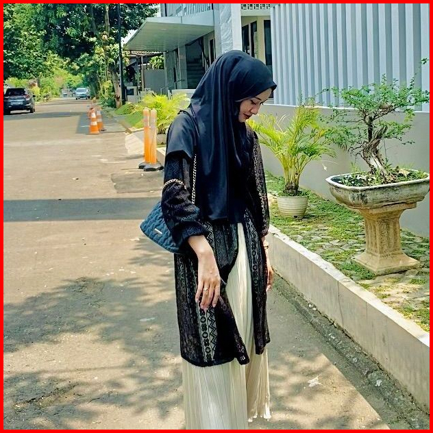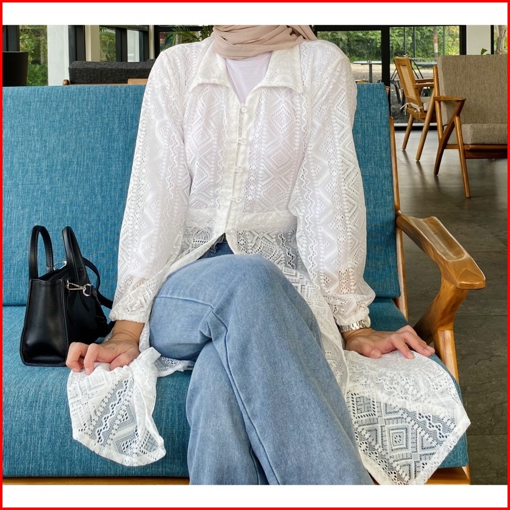 Delica Tunik Outer Lace Tunik Lace Brukat Kondangan Tunik Cardigan Panjang Wanita