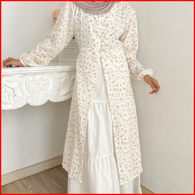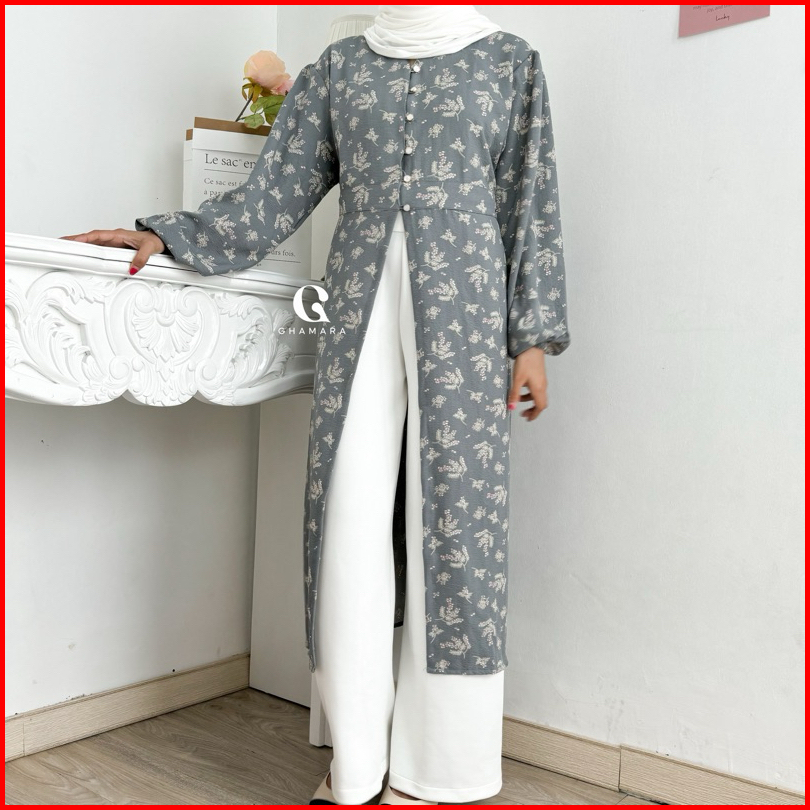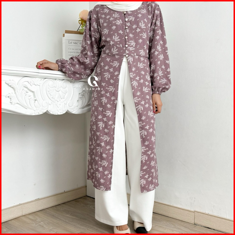 Ghamara Shoya Tunik Motif Blouse Bunga Atasan Floral Outfit Lebaran