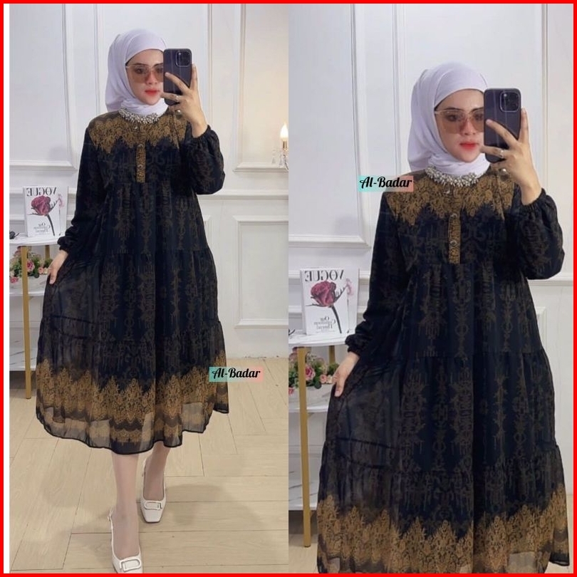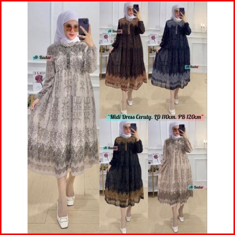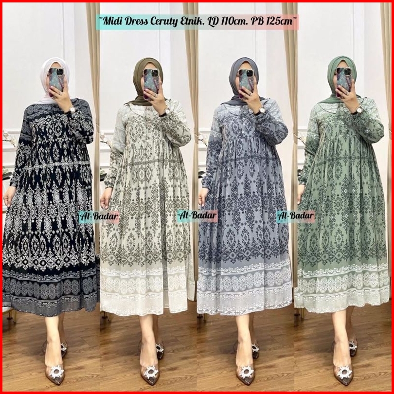 Mididress Ceruty Motif Etnik Freandly Busui Model Terbaru Dan Terlaris Tunik Ceruty Etnik Model Terkini
