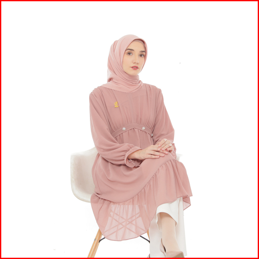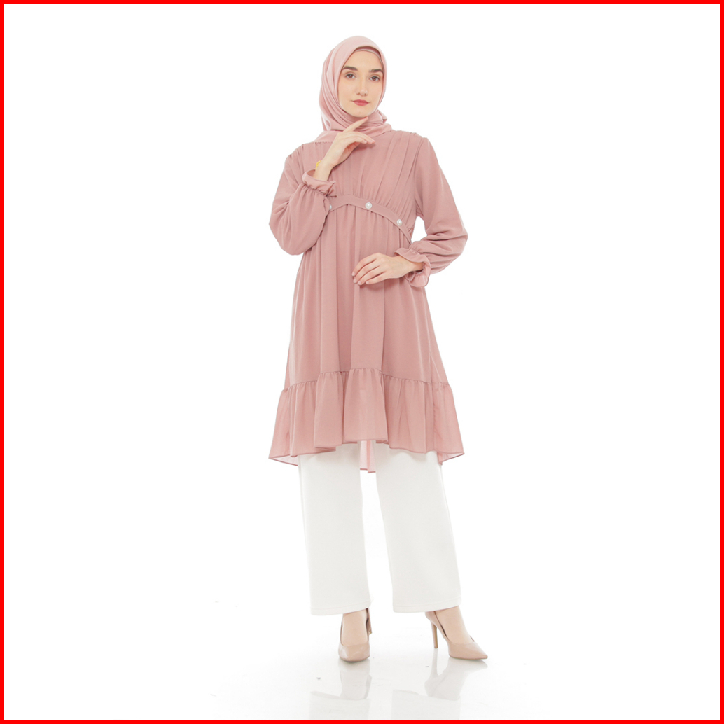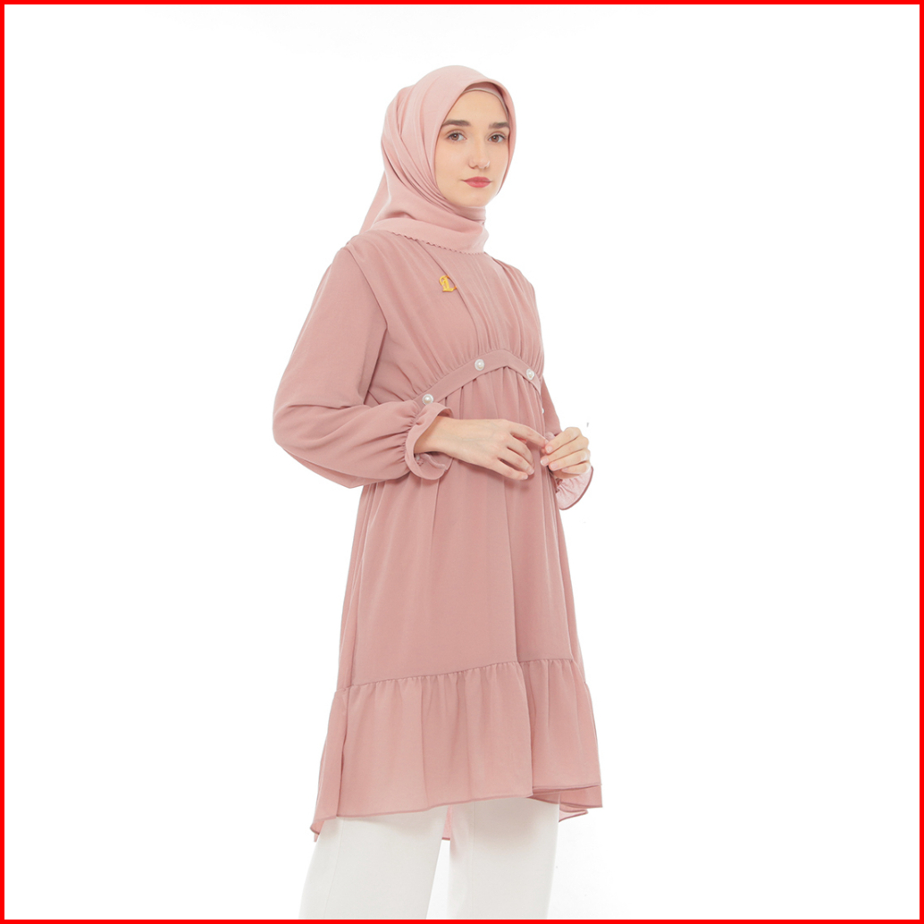 Dzellia - Gracia Tunik Atasan Wanita Muslimah Atasan Bahan Nyaman Ceruty Premium Peach - L-xl-xxl