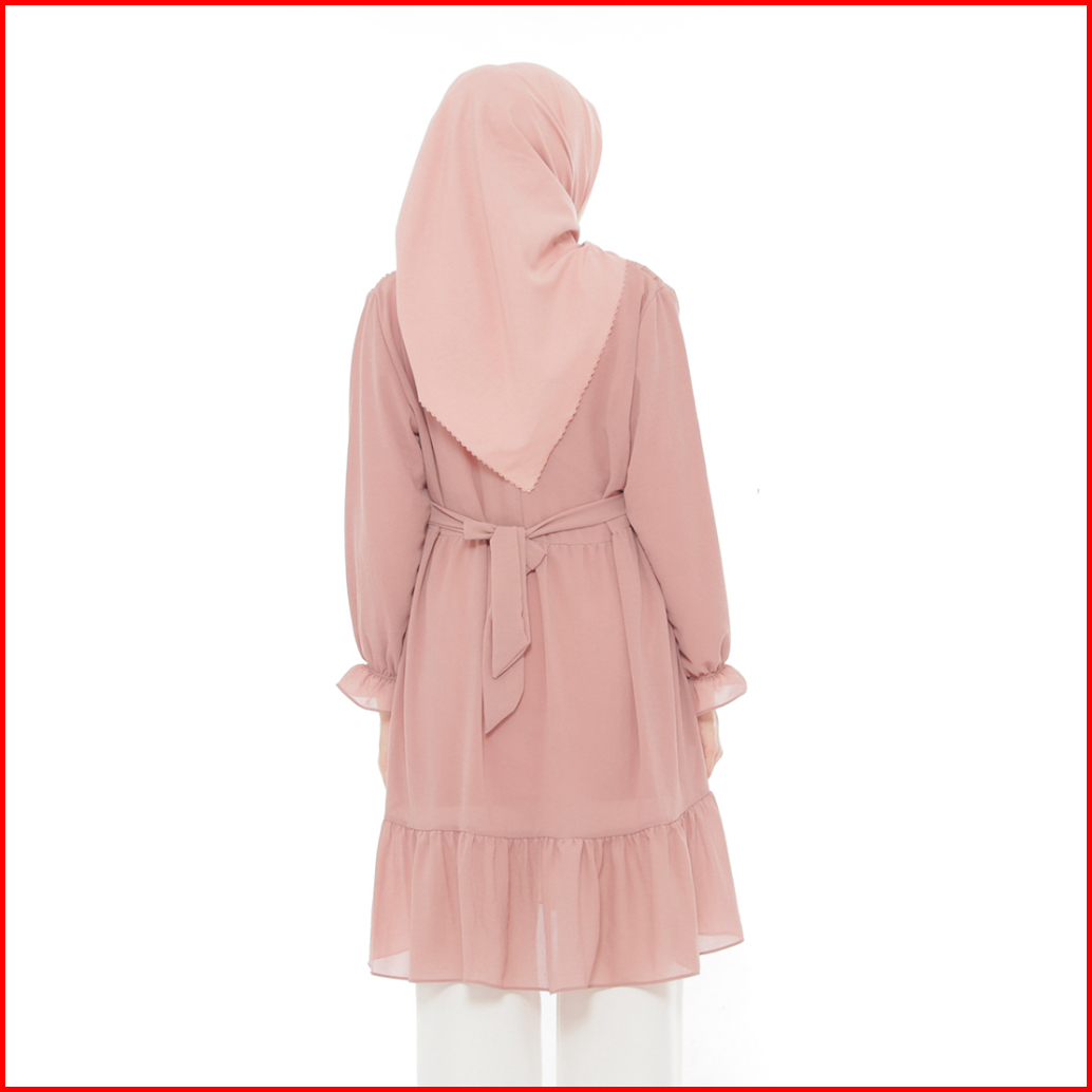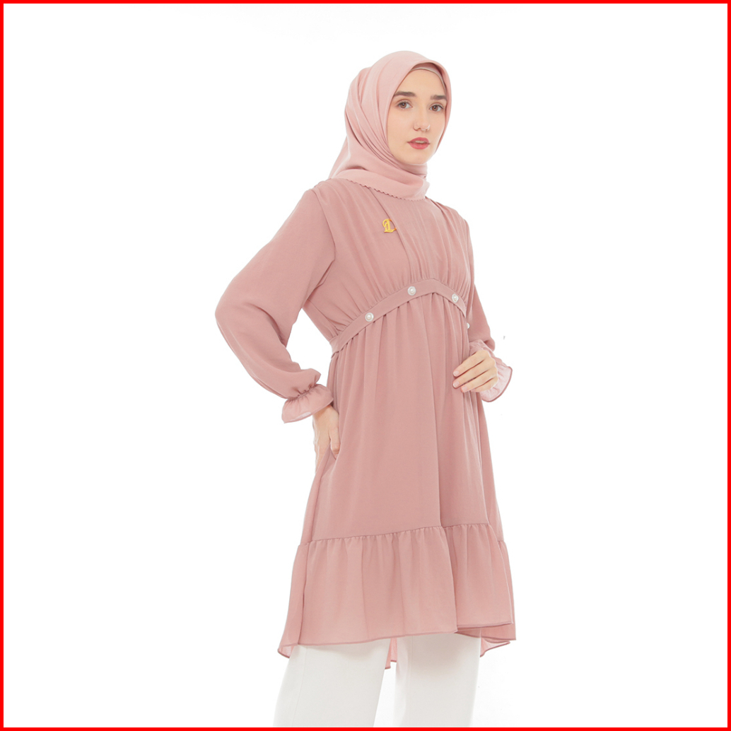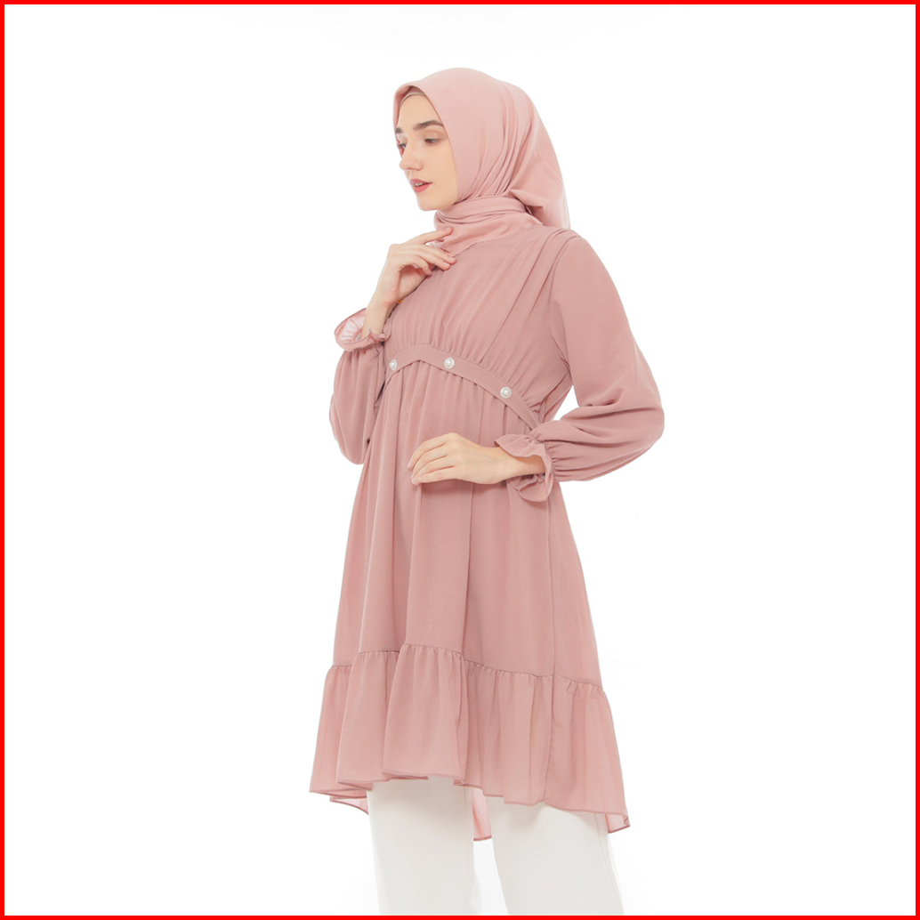Dzellia - Gracia Tunik Atasan Wanita Muslimah Atasan Bahan Nyaman Ceruty Premium Peach - L-xl-xxl