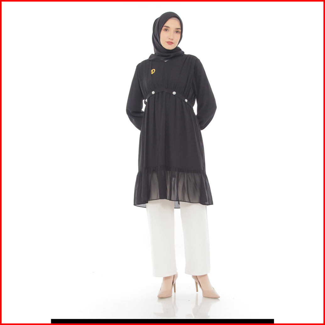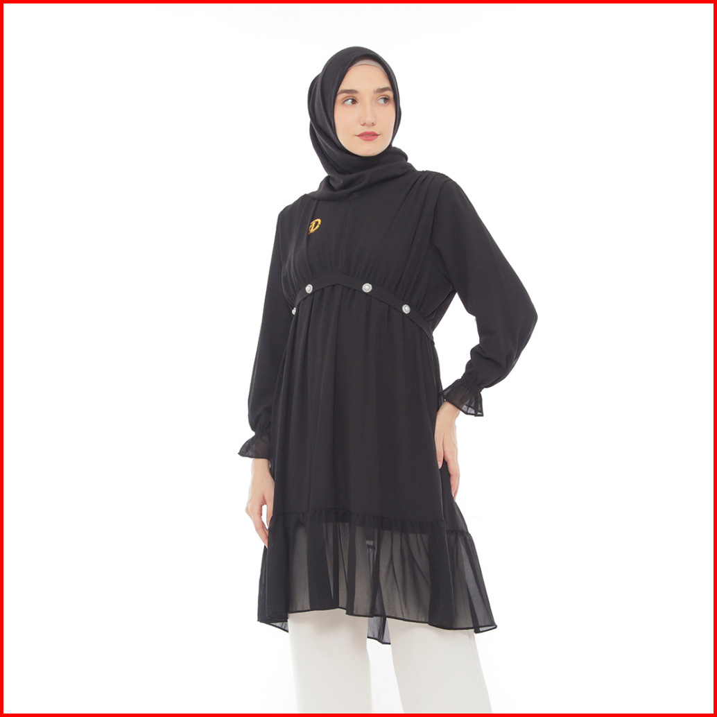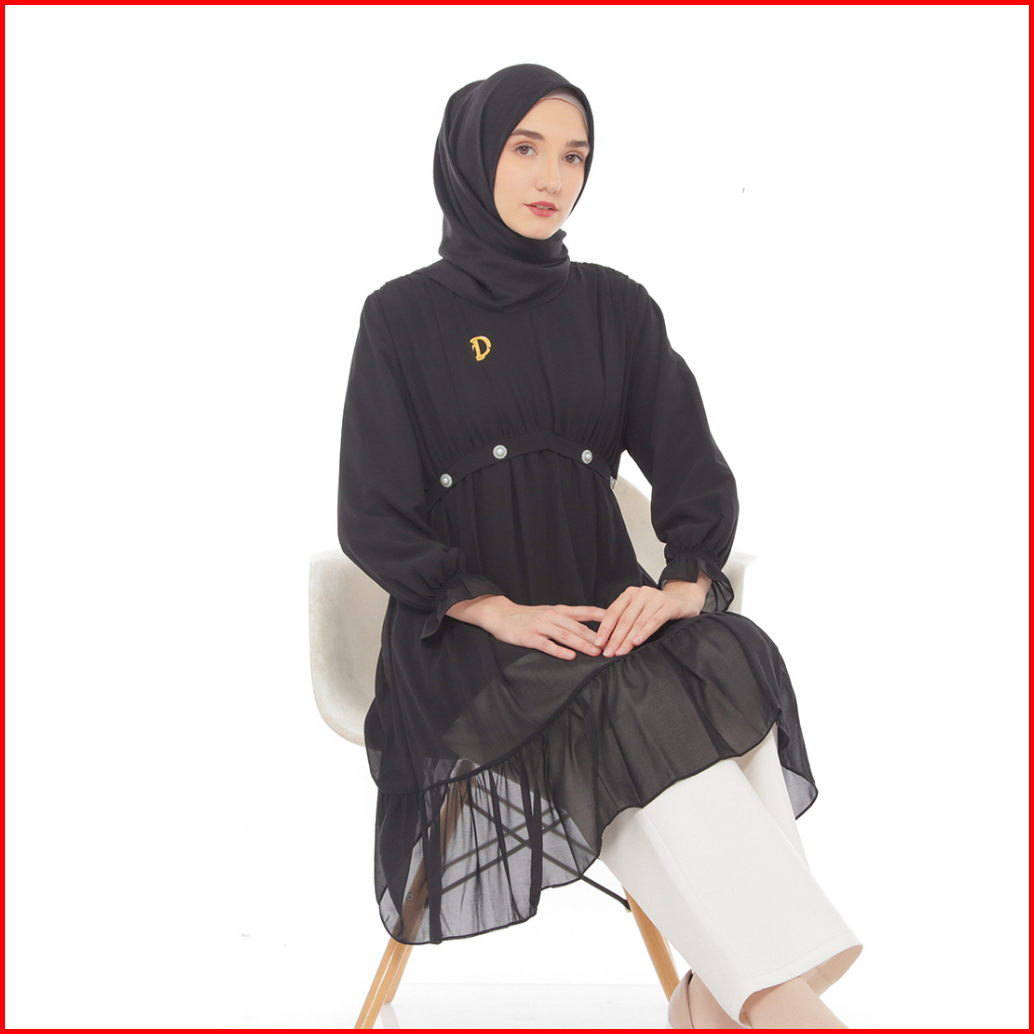 Dzellia - Gracia Tunik Atasan Wanita Muslimah Atasan Bahan Nyaman Ceruty Premium Black - L-xl-xxl
