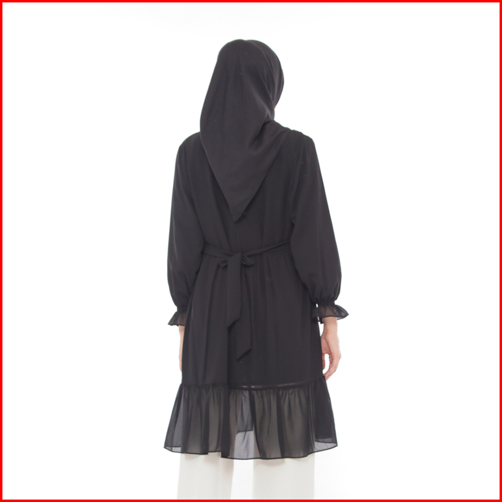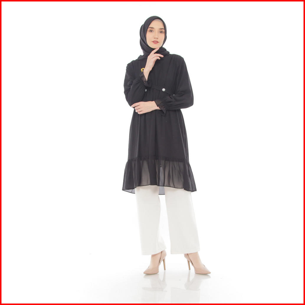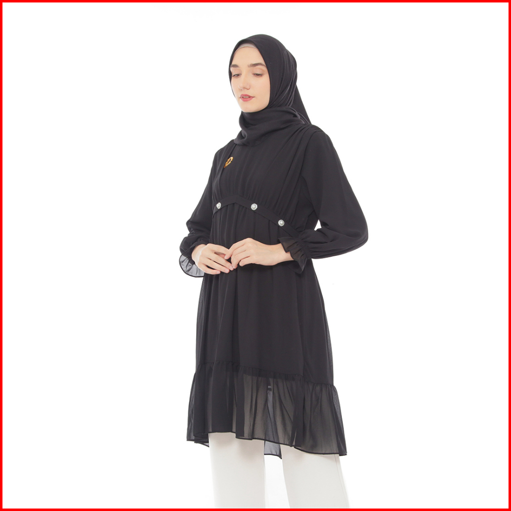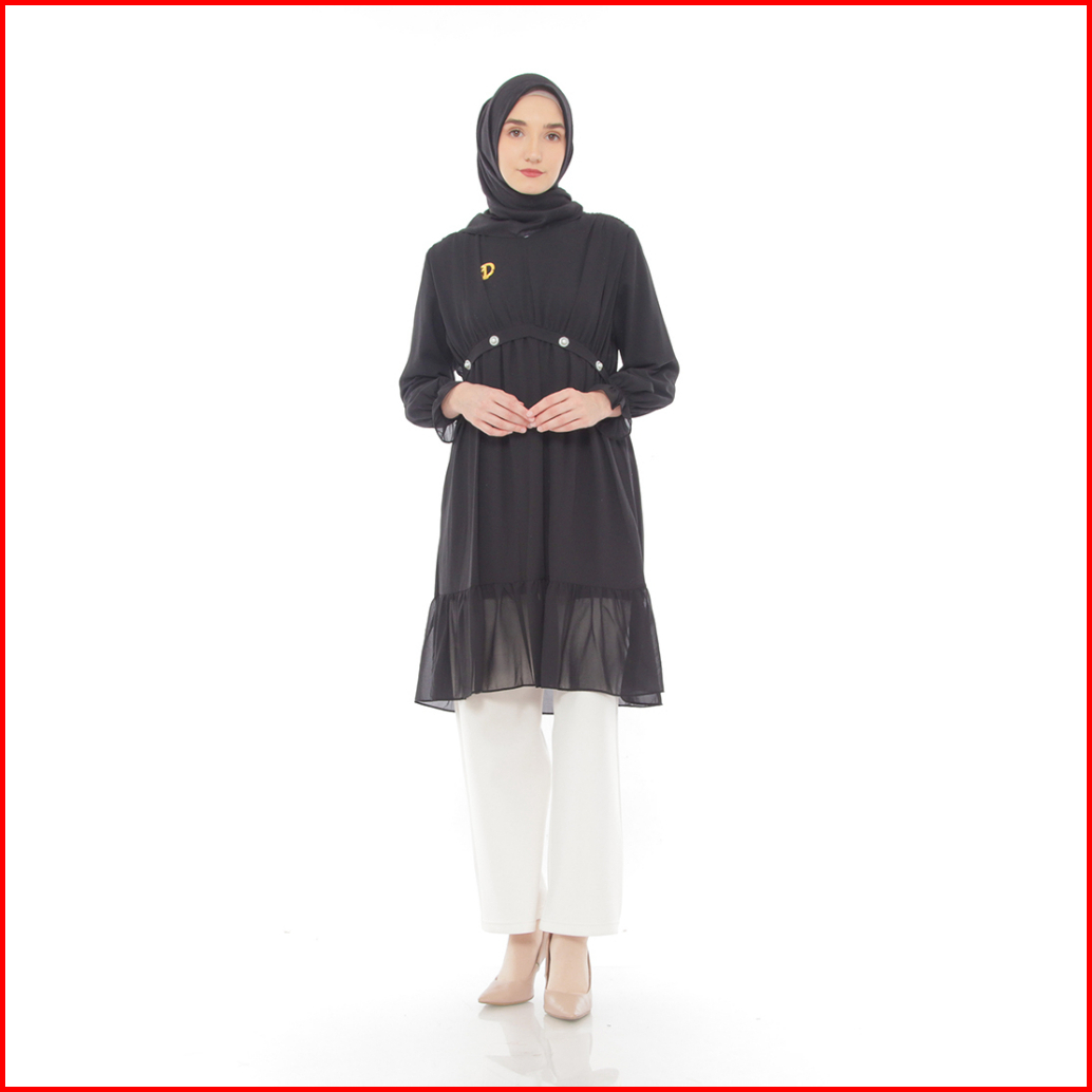 Dzellia - Gracia Tunik Atasan Wanita Muslimah Atasan Bahan Nyaman Ceruty Premium Black - L-xl-xxl