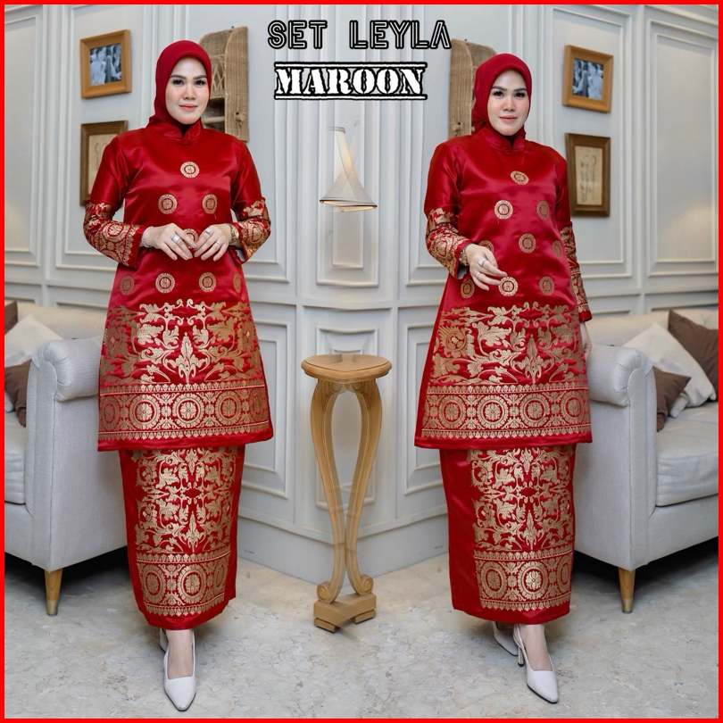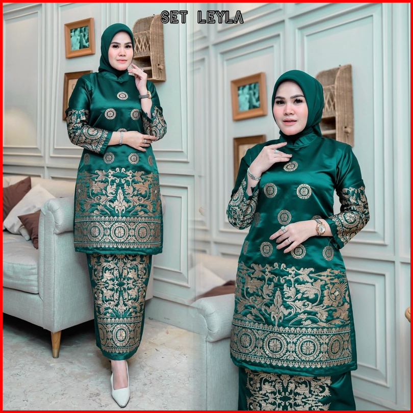 Kebaya Set Laila Tunik Bridal Bordir Kebaya Modern Tunik Setelan Wanita Pakaian Tradisional Baju Pesta Kebaya Pesta Keba